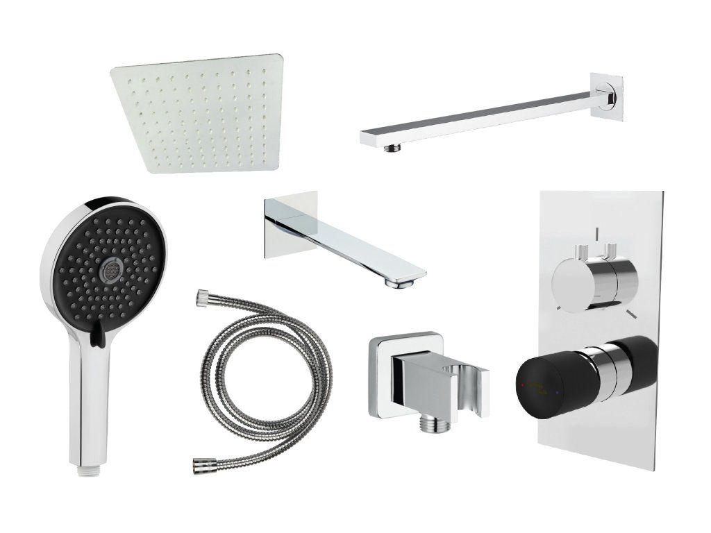 AQS SET podomietkovej sprchovej batérie pre 3 odberné miesta a sprch.príslušenstva, PLATFORM ROUND