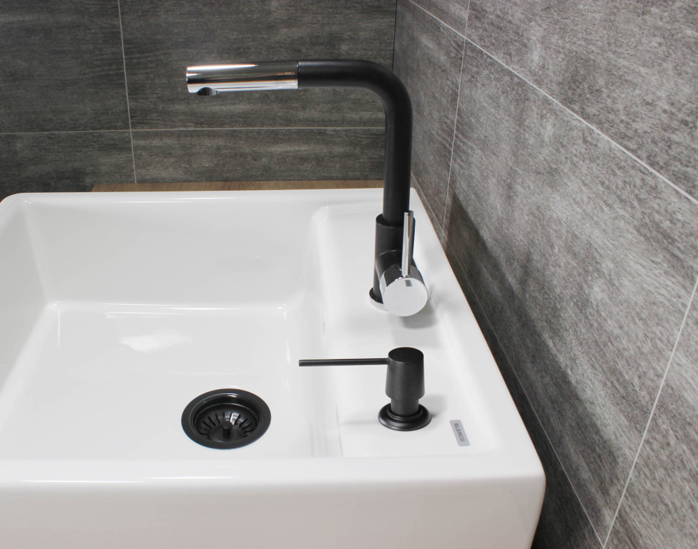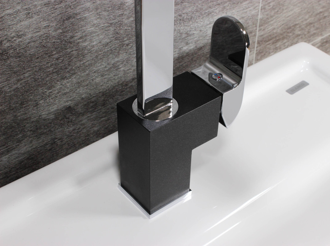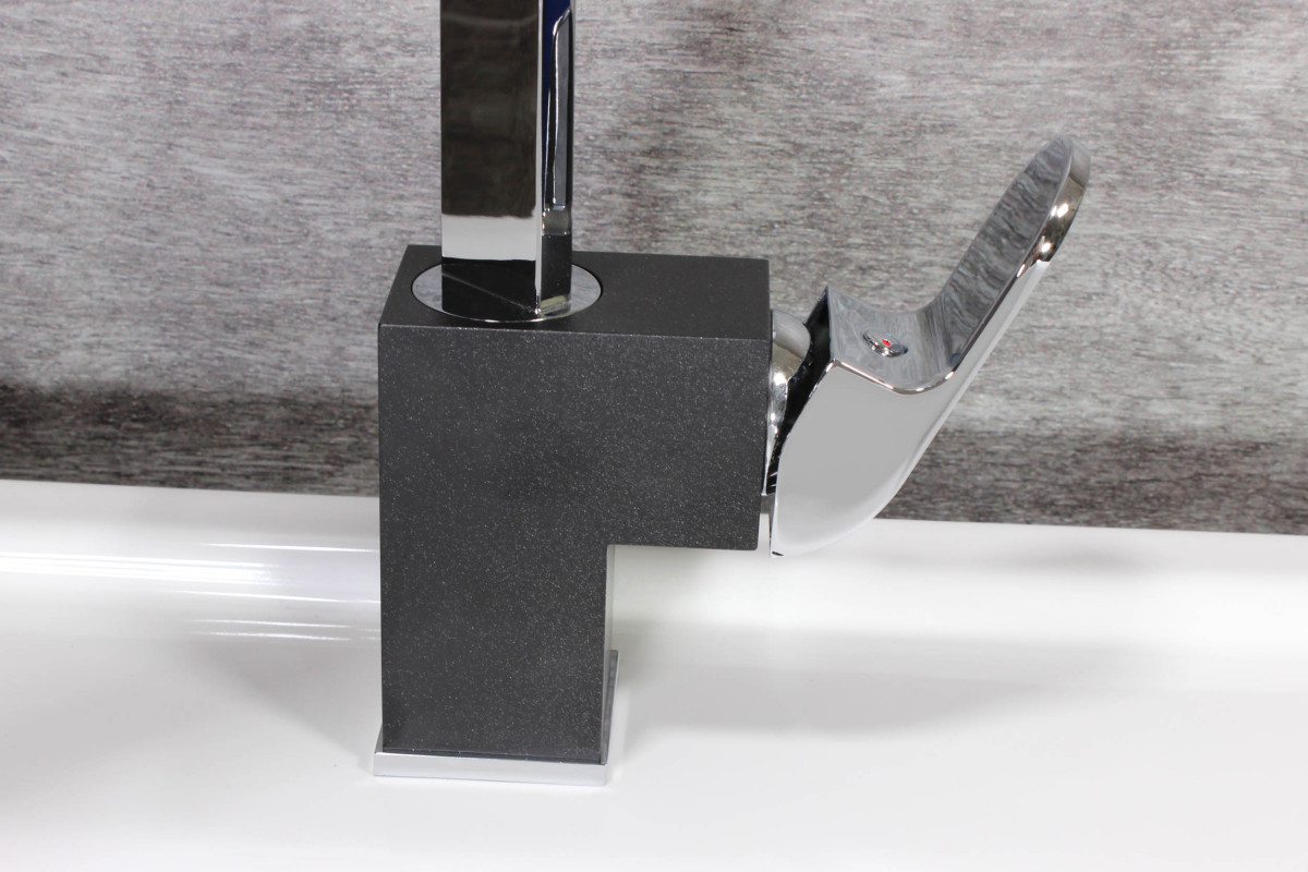 Drezovú vodovodnú batériu Aquasanita Singna 2083 ponúkame v prevedenie chróm alebo v kombinácii chróm - čierny granit . Batéria bude skvele vyzerať v kombinácii s granitovým drezom v akejkoľvek farbe. Čiernu granitovú batériu skvele doladíte do jednotného farebného celku s čiernym granitovým drezom.