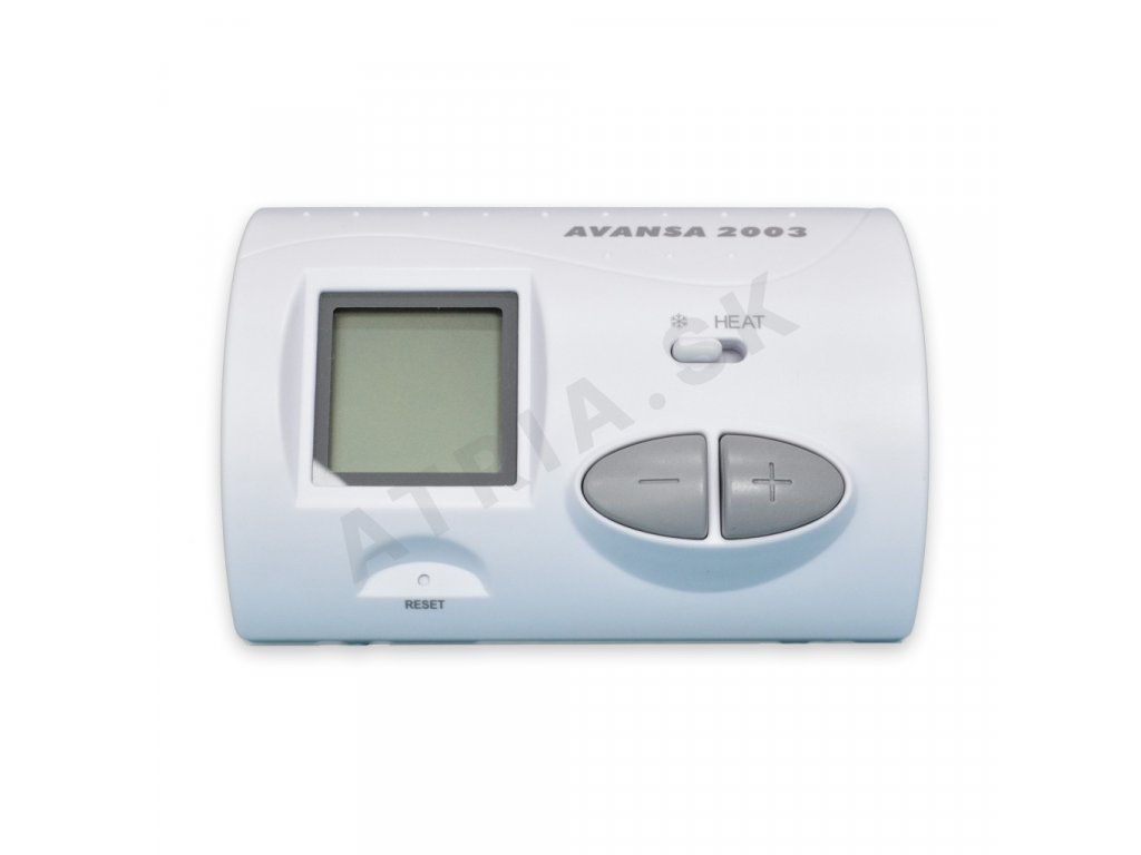 AVANSA 2003 je neprogramovateľný izbový termostat vhodný na reguláciu väčšiny kotlov, ktoré sú predávané v Slovenskej republike. Termostat je možné jednoducho pripojiť ku kotlu alebo ku klimatizačnému zariadeniu s prevádzkovým napätím od 24 - 230 V. Digitálny displej termostatu AVANSA 2003 oproti jednoduchým, tradičným termostatom umožňuje presnejšie zmeranie telesnej teploty a nastavenie potrebných údajov. Na základe vybranej citlivosti zapnutia dokáže termostat pod nastavenú teplotou zapnúť a nad nastavenú teplotou vypnúť kotol. Pri vysokej komfornosti zabezpečuje aj zníženie energických nákladov. Citlivosť zapnutia je možné zvoliť medzi ± 0,2 °C (základné nastavenie vo výrobe, odporúčané pri vykurovaní s radiátorom) a +/- 0,2 C (odporúčané u podlahového kúrenia).