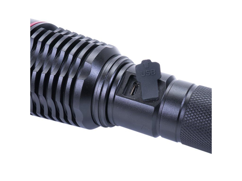 Balenie hliníkovej baterky PNI Adventure F420 s LED 10W, 1000lm, do 420m, s 2 batériami súčasťou balenia, 8000 mAh typ 26650 a zdroj PNI CHG300 s USB C portom, QC3.0, PD3.0, PPS a USB-A portom, 30 WDodatočné parametre