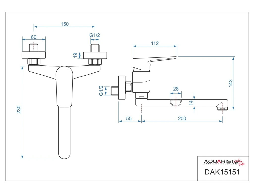 batéria AQS drezová stenová s rovným liatym výtokom, rozstup 150mm, DAKOTA