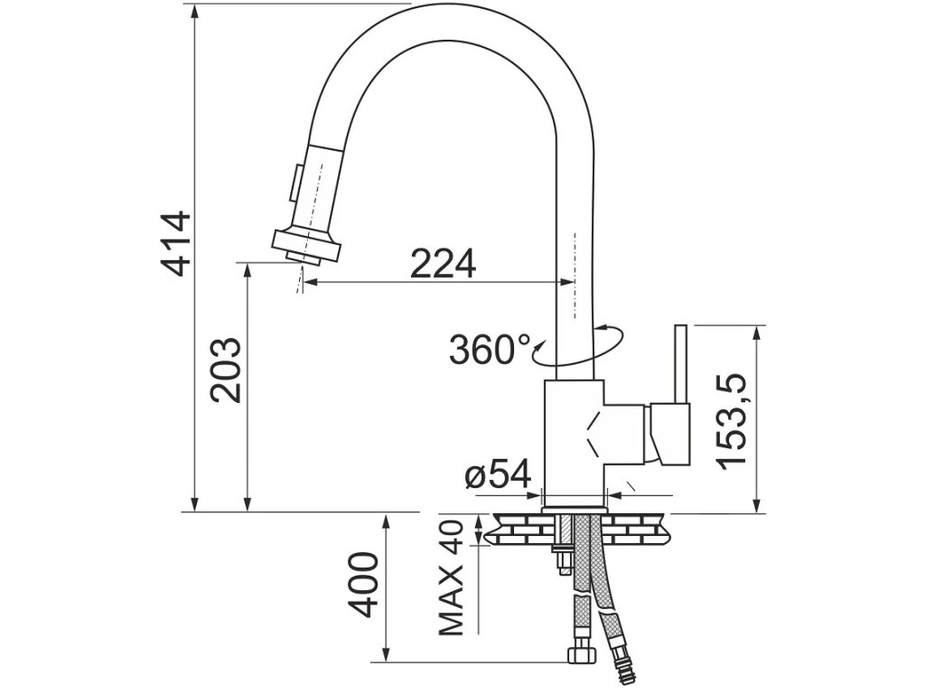 batéria AQS drezová stojanková s výsuvnou sprchou, PULL 3
