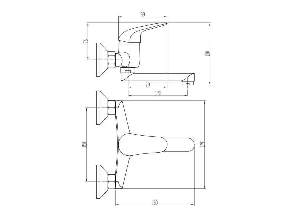 batéria drezová stenová s rovným liatym krátkym 12cm výtokovým ramenom, PLUTO