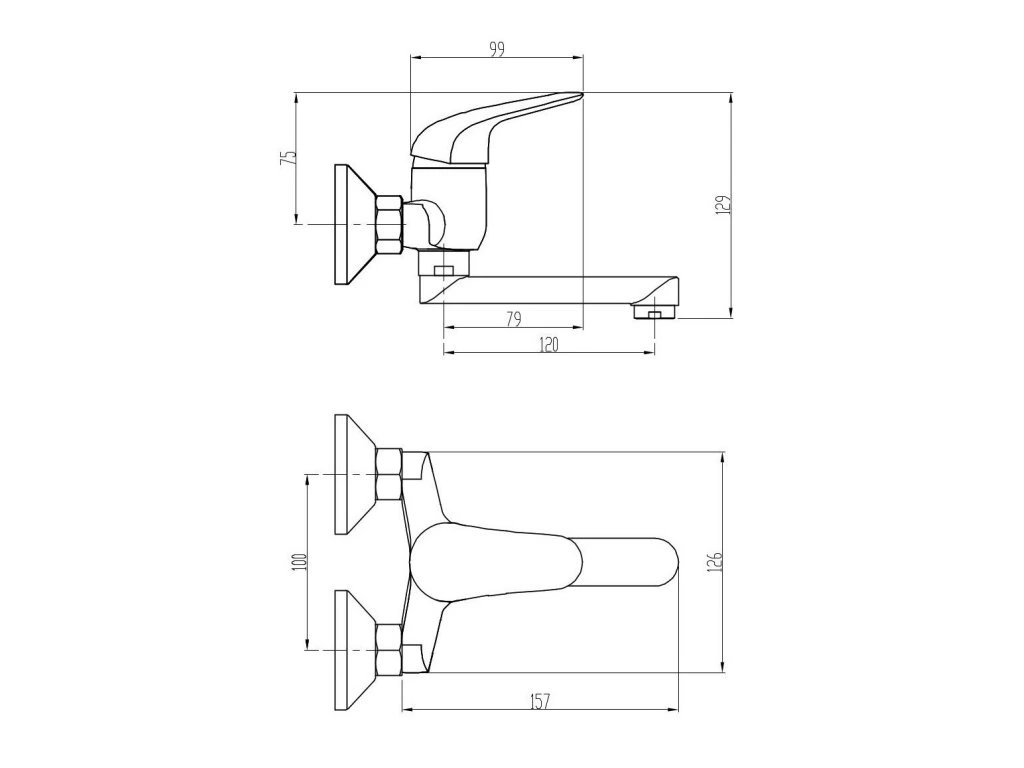 batéria drezová stenová s rovným liatym krátkym 12cm výtokovým ramenom, rozstup 100mm, PLUTO
