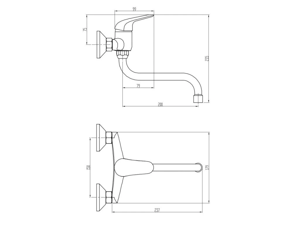 batéria drezová stenová s trubkovým 20cm "S" výtokovým ramenom, PLUTO