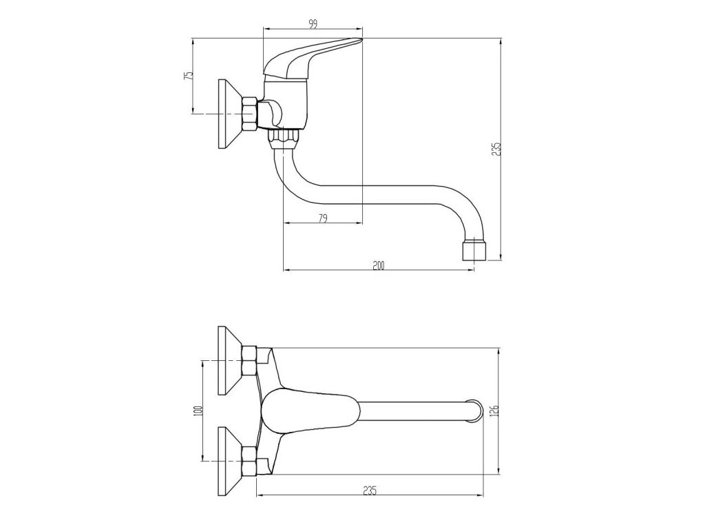 batéria drezová stenová s trubkovým 20cm "S" výtokovým ramenom, rozstup 100mm, PLUTO
