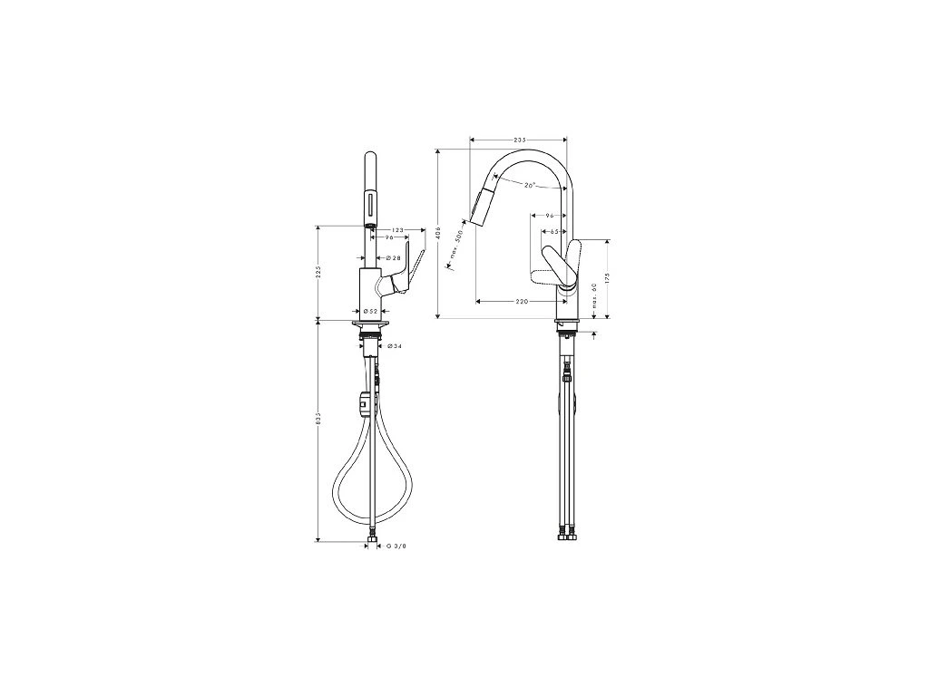 <p>Páková drezová stojanková vodovodná batéria s praktickou <strong>vyťahovacou sprškou</strong> so sprchovým a laminárnym prúdom.<br> Sprchový prúd je aretovateľný, spätné nastavenie prúdu možné stisknutím tlačidla. Súčasťou je magnetický držiak spršky MagFit.<br> <br> Batéria má otočné ramienko. Rozsah otáčania: 110°/150°.<br> <br> Kvalitná keramická kartuša.<br> Maximálny prietok pri 0,3 MPa: 10 l/min.<br> Spôsob montáže: pripojenie pomocou hadíc G 3/8.<br> Rozmer prívodov: DN 15.</p> <p><strong>QuickClean </strong>– perlátor je zakončený silikónovým nopkovaním, vďaka čomu možno jednoducho a rýchlo odstránit nečistoty a usadeniny.<br> <strong>ComfortZone 240 </strong>– zaručuje vyšší komfort používania - priestornejšie miery, intuitívne ovládanie. </p> <p>Povrchová úprava batérie je chróm.</p> <p>Vodovodná batéria je zo série FOCUS E2 nemeckej značky HANSGROHE.</p>Buďte prvý, kto napíše príspevok k tejto položke.