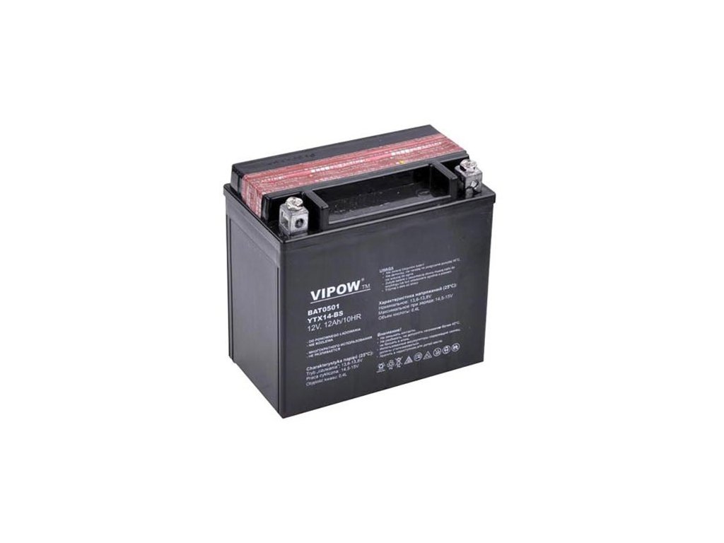 Batéria motocyklová 12V 12Ah VIPOWBatéria VIPOW MC typu 12V, 14Ah je spoľahlivý zdroj energie pre motocykle, navrhnutý s ohľadom na výkon a dlhú životnosť. Vďaka pokročilým technickým parametrom poskytuje táto batéria solídnu podporu pre štartovanie a napájanie vozidla, čo z nej robí ideálnu voľbu pre užívateľov, ktorí hľadajú spoľahlivosť a výkon.