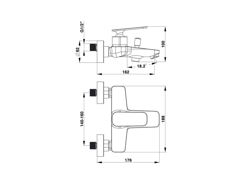 batéria vaňová stenová, s automatickým prepínaním vaňa/sprcha, HERZ ZEN, chróm