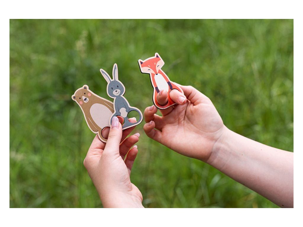 Ponorte sa s deťmi do sveta príbehov a fantázie. Užite si veľa zábavy s múdrou líškou, odvážnym medveďom a rýchlym zajačikom. Vyberte si svoju obľúbenú postavičku, nasaďte si bábku na prsty a pustite sa do rozprávania príbehu. Môžete byť hercom aj režisérom v neuveriteľných dobrodružstvách, ktoré si sami vymyslíte. Každý dielik spĺňa prísne bezpečnostné normy, je pomaľovaný pre deti nezávadnými farbami a má certifikáciu CE, čo zaručuje bezpečnosť a vhodnosť na použitie deťmi od troch rokov. Hlavné vlastnosti: vyrobené z brezového drevarozvíja kreativitu, fantáziu a umelecké schopnostispĺňa prísne bezpečnostné normycertifikácia CEDodatočné parametre