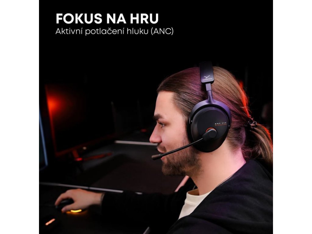 Nerušený herný zážitok: Aktívne potlačenie hluku (ANC) efektívne filtruje rušivé zvuky okolia, takže sa môžete plne sústrediť len na hru.