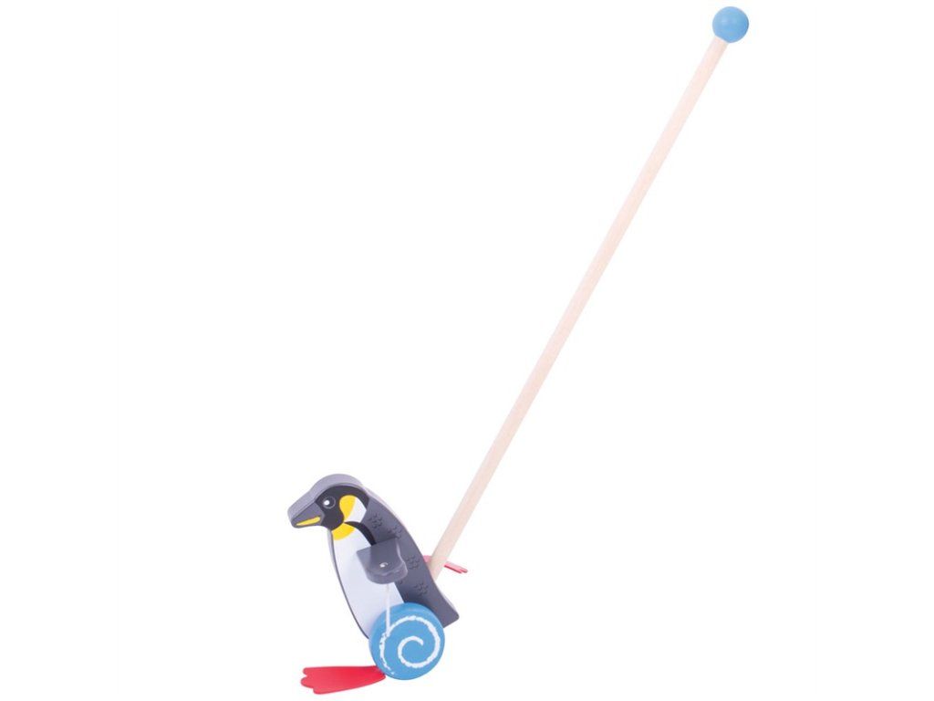 Rovnováha a pohyb sú zručnosti, ktoré deťom tento jazdík pomôže rozvinúť. Držadlo je zakončené guličkou, možno ho teda jednoducho uchopiť. Deti môžu tučniaka strkať alebo ťahať doma i vonku. Táto hračka podporuje deti v chôdzi a porozumeniu príčiny a následku. Vyrobené z kvalitných materiálov zo zodpovedných zdrojov. Spĺňa európske bezpečnostné štandardy.Hlavné vlastnosti: podporuje pohybovú aktivitu rozvíja rovnováhu zábavnou formou kolieska vydávajú veselý klapavý zvuk pri otáčaníDodatočné parametre