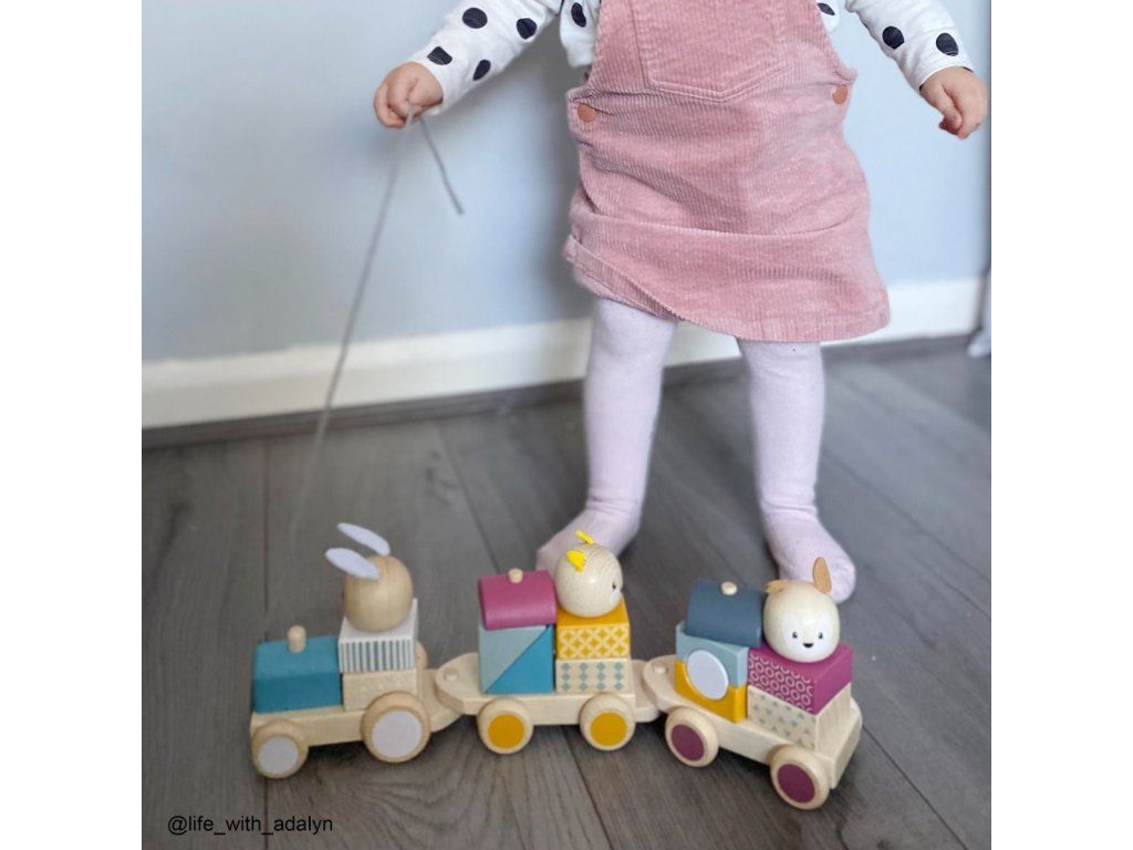 Všetci si nastúpte do tohto krásneho ťahacieho vláčiku! Je vyrobený zo 100% FSC dreva, je nádherne pestrofarebný a deti zabaví na dlhé hodiny. V balení nájdete mašinku a dva vagóniky, tiež troch zvieracích pasažierov! Vláčik môžu deti ťahať bez problému po mäkkom i tvrdom povrchu.Hračka je veľmi univerzálna, je nielen ťahacie, ale funguje aj ako nasazovačka a puzzle. Kocky môžete poskladať niekoľkými rôznymi spôsobmi, to pomáha s rozvojom zručnosti a zručnosti počítania.Hladké 100% FSC drevo z eticky spravovaných lesov tvorí tento vláčik, ktorý je veľký tak akurát pre detské ruky. Kvalitné drevo zaručuje, že vám hračka vydrží po mnoho rokov. Hlavné vlastnosti: 1 mašinka, 2 vagóniky, 3 pasažieri16 dielikovkvalitné FSC certifikované materiálynetoxické farby Značka a certifikát FSC® (Forest Stewardship Council) zaručuje, že drevo, z ktorého bol výrobok vyrobený, nebolo vyťažené nelegálne a pochádza z lesov obhospodarovaných šetrným či prírode blízkym spôsobom, v ktorom sú dodržiavané prísne environmentálne a sociálne požiadavky. Značka FSC® na výrobku znamená, že svojim nákupom pomáhate chrániť lesy a podporujete šetrné, zodpovedné či prírode blízke hospodárenie, vďaka ktorému sú naše lesy stabilnejšie, zdravšie, majú prirodzenú druhovú skladbu a lepšie odolávajú negatívnym následkom klimatických zmien.Dodatočné parametre