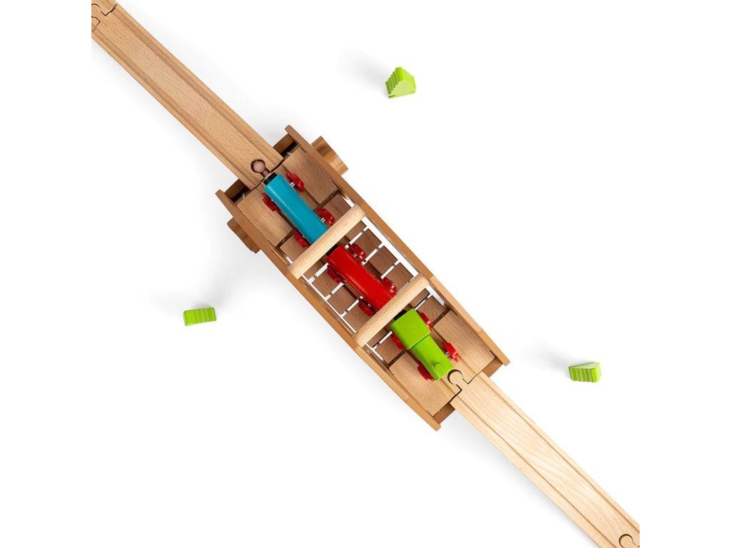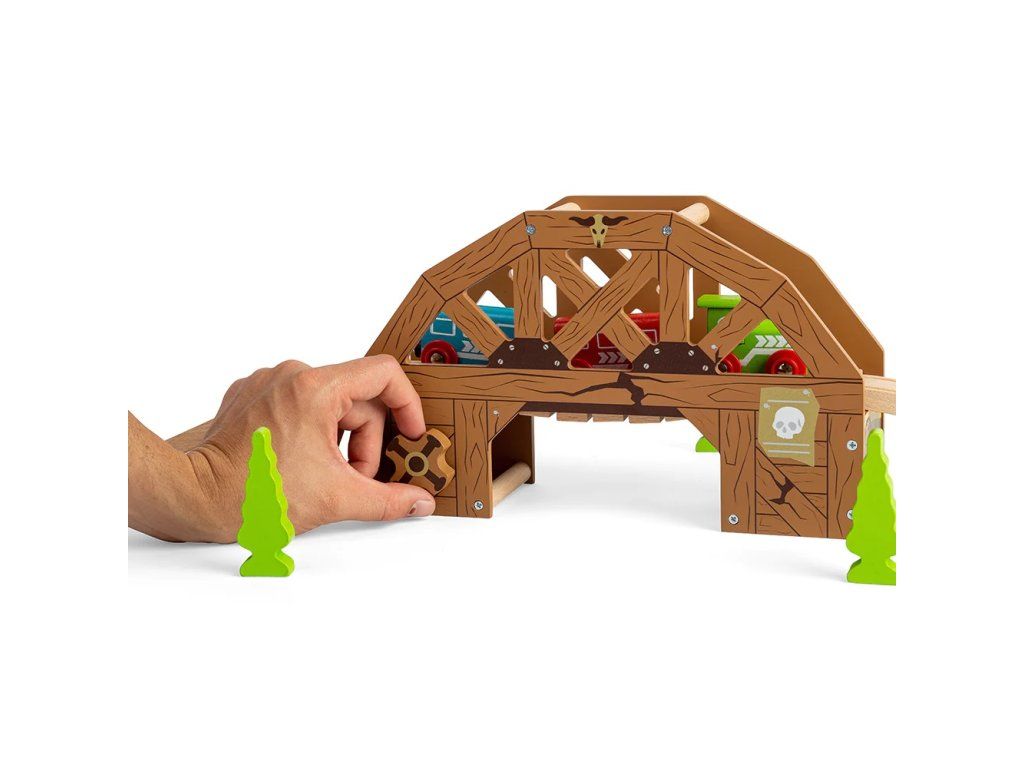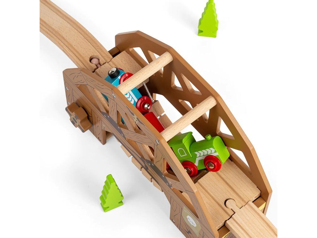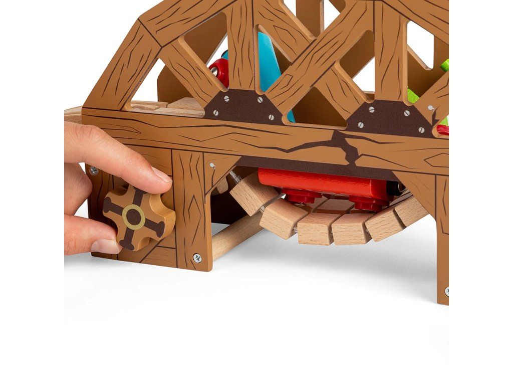 Kovboji a kovbojky si užijú mnoho zábavy s týmto dreveným mostom v tematike divokého západu. Vlaky vyjdú na most, ale dostanú sa bezpečne na druhú stranu? Otočte okolo a most spadne! Interaktívny doplnok vláčikodráhy pre všetkých vlakových nadšencov. Hranie s vláčikom a otáčanie kolesa rozvinie detskú motoriku a koordináciu ruka-oko. Obsahuje dva kusy stúpajúcej a klesajúcej koľaje.Vláčikodráhy a ich príslušenstvo značky Bigjigs Rail je možné kombinovať so všetkými ďalšími drevenými vláčikodráhami na trhu. Vyrobené z vysoko kvalitných materiálov zo zodpovedných zdrojov. Zodpovedá európskym bezpečnostným štandardom. Hlavné vlastnosti: drevený padajúci mostkompatibilný s vláčikodráhami Bigjigs Toysvhodné od 3 rokovDodatočné parametre