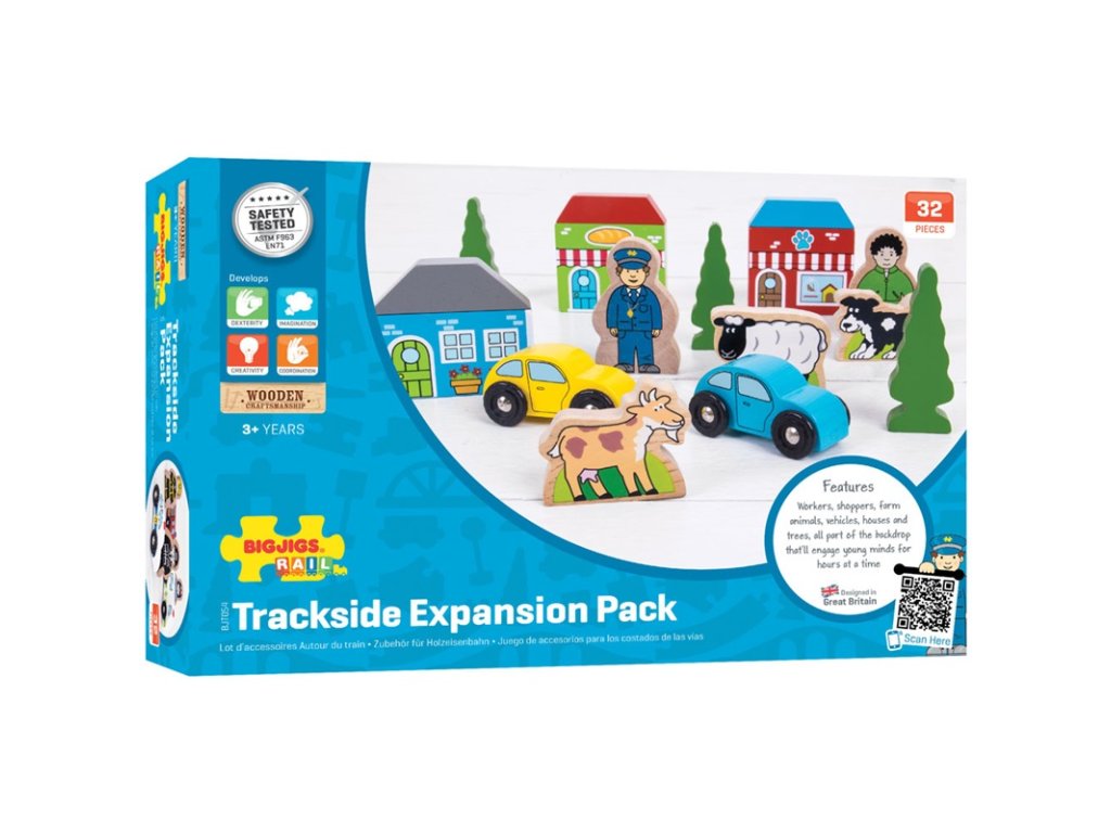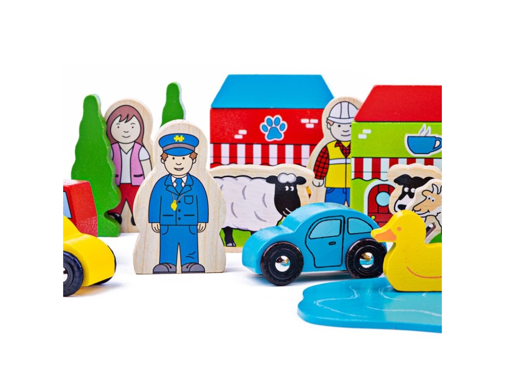 Pracovníci, nakupujúci, hospodárske zvieratá, vozidlá, domy a stromy sú súčasťou veľkej sady, ktorá zaujme deti po celé hodiny. V balení je 32 ks príslušenstva. Hlavné vlastnosti: vláčikodráhy a ich príslušenstvo značky Bigjigs Rail je možné kombinovať so všetkými ostatnými drevenými železničnými dráhami na trhuvyrobené z kvalitných a zodpovedne získaných prírodných materiálovzodpovedá súčasným európskym bezpečnostným normámpodporuje predstavivosť, obratnosť a koordináciuDodatočné parametre