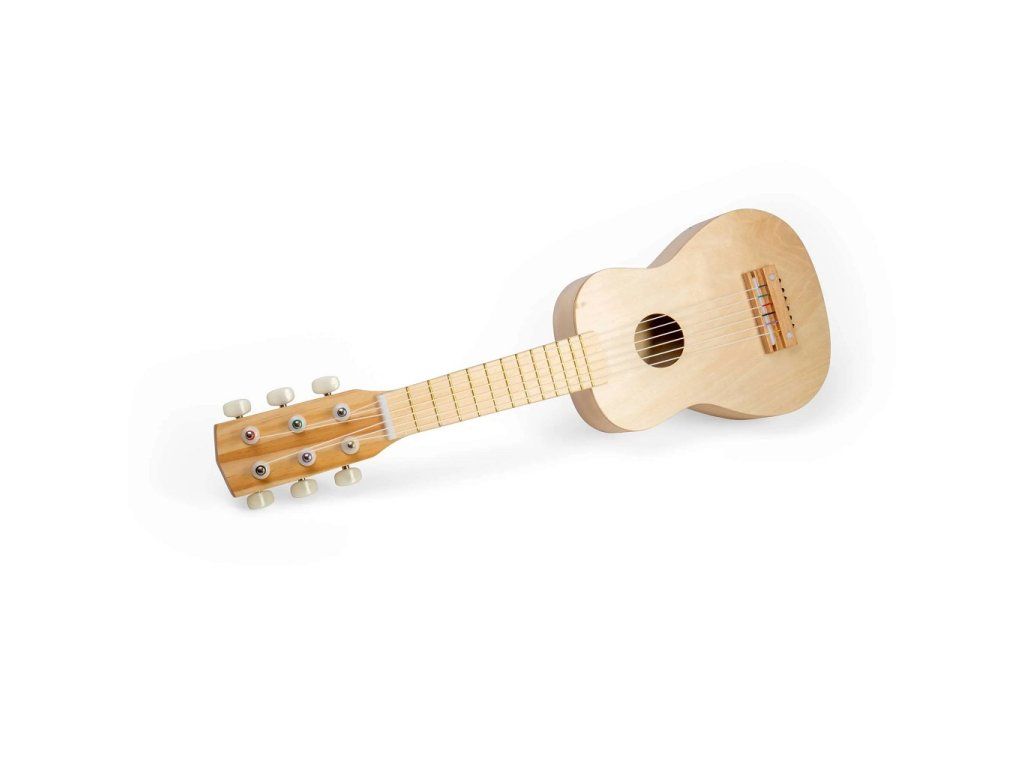 Ponorte sa do sveta rytmov a melódií s touto drevenou detskou gitarou v prírodnom prevedení. Gitara je súčasťou radu drevených hudobných hračiek a svojou veľkosťou je prispôsobená malým detským ručičkám, ktoré sa môžu zoznámiť so základmi hudby. Detská gitara má šesť strún, ktoré je možné ladiť podobne ako u skutočnej gitary, a je tak vhodná ako prvý hudobný nástroj pre malých začiatočníkov. Je vyrobená z kvalitného dreva a vďaka pevnému spracovaniu je dostatočne odolná na každodenné hranie. Súčasťou je aj trsátko a praktický stojan, ktorý umožňuje gitaru po skončení hry bezpečne odložiť. Hranie na gitaru podporuje kreativitu, hudobné vnímanie a sebavyjadrenie. Manipulácia so strunami pomáha rozvíjať jemnú motoriku, koordináciu rúk a zmysel pre rytmus a načasovanie. Gitara ponúka deťom priestor na objavovanie zvukov, vlastné hudobné prejavy aj spoločnú hru. Nejedná sa o hudobný nástroj, ale iba o hračku. Hlavné vlastnosti: drevená detská gitara v prírodnom prevedení6 laditeľných strúnveľkosť prispôsobená malým detským ručičkámvyrobená z kvalitného drevasúčasťou balenia trsátko a stojan na gitarupodporuje kreativitu a hudobné vnímanierozvíja jemnú motoriku, koordináciu a zmysel pre rytmusvhodné ako prvý hudobný nástroj pre detiDodatočné parametre