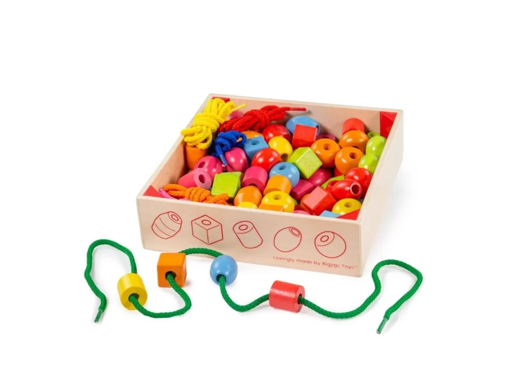 Bigjigs Toys Drevené navliekacie korálky v debničke