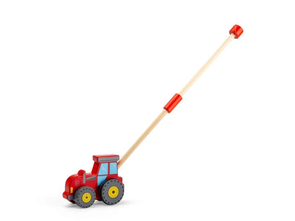 Podporte prvé krôčiky vášho dieťaťa s týmto hravým dreveným traktorom na tlačenie. Tento žiarivo červený traktor je navrhnutý pre malé ručičky a veľké dobrodružstvá, ideálny pre malých farmárov na cestách. Traktor zaujme svojim farebným dizajnom a milými detailmi, ako sú okienka a svetlomety. Veľké kolesá uľahčujú pohyb po podlahe a pomáhajú deťom pri objavovaní okolitého sveta. Praktická skladacia rukoväť sa dá ľahko odňať, čo uľahčuje skladovanie aj prenášanie. Hračka podporuje rozvoj mobility, rovnováhy a koordinácie. Zároveň pomáha deťom pochopiť vzťah medzi pohybom a reakciou. Traktor je vyrobený z kvalitného FSC® certifikovaného dreva z udržateľných zdrojov a dodáva sa v ekologickom balení bez plastov. Hlavné vlastnosti: drevená hračka na tlačenie so skladacou rukoväťoupodporuje rozvoj rovnováhy, mobility a koordinácievyrobené z FSC® certifikovaného drevaekologické balenie bez plastovvhodné pre deti od 12 mesiacov Značka a certifikát FSC® (Forest Stewardship Council) zaručuje, že drevo, z ktorého bol výrobok vyrobený, nebolo vyťažené nelegálne a pochádza z lesov obhospodarovaných šetrným či prírode blízkym spôsobom, v ktorom sú dodržiavané prísne environmentálne a sociálne požiadavky. Značka FSC® na výrobku znamená, že svojim nákupom pomáhate chrániť lesy a podporujete šetrné, zodpovedné či prírode blízke hospodárenie, vďaka ktorému sú naše lesy stabilnejšie, zdravšie, majú prirodzenú druhovú skladbu a lepšie odolávajú negatívnym následkom klimatických zmien.Dodatočné parametre