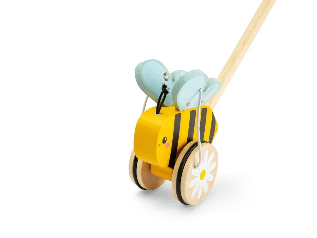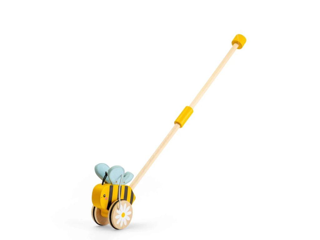 Podporte prvé krôčiky vášho dieťaťa s touto roztomilou včielkou na tlačenie. Hračka je navrhnutá pre malé ručičky a veľké dobrodružstvá a pomáha deťom objavovať pohyb zábavnou formou. Včielka zaujme svojim veselým dizajnom v kontrastných farbách a milými detailmi. Pri tlačení sa jej krídla pohybujú, čo deti motivuje k ďalšiemu pohybu. Veľké kolesá s kvetinovými motívmi zaisťujú stabilitu a ľahký pohyb po rôznych povrchoch. Praktická skladacia rukoväť sa dá ľahko rozložiť, čo uľahčuje skladovanie aj prenášanie. Hračka podporuje rozvoj rovnováhy, koordinácie a celkovej mobility. Zároveň pomáha deťom pochopiť vzťah medzi pohybom a reakciou. Včielka je vyrobená z kvalitného FSC® certifikovaného dreva z udržateľných zdrojov a dodávaná v ekologickom balení bez plastov. Hlavné vlastnosti: drevená hračka na tlačenie so skladacou rukoväťoupohyblivé krídla pre väčšiu zábavu pri chôdzipodporuje rozvoj rovnováhy, koordinácie a mobilityvyrobené z FSC® certifikovaného drevaekologické balenie bez plastovvhodné pre deti od 12 mesiacov Značka a certifikát FSC® (Forest Stewardship Council) zaručuje, že drevo, z ktorého bol výrobok vyrobený, nebolo vyťažené nelegálne a pochádza z lesov obhospodarovaných šetrným či prírode blízkym spôsobom, v ktorom sú dodržiavané prísne environmentálne a sociálne požiadavky. Značka FSC® na výrobku znamená, že svojim nákupom pomáhate chrániť lesy a podporujete šetrné, zodpovedné či prírode blízke hospodárenie, vďaka ktorému sú naše lesy stabilnejšie, zdravšie, majú prirodzenú druhovú skladbu a lepšie odolávajú negatívnym následkom klimatických zmien.Dodatočné parametre
