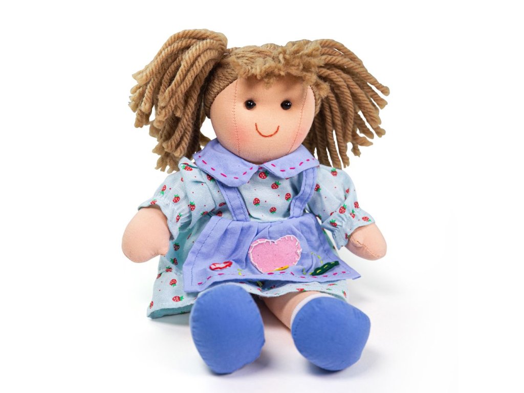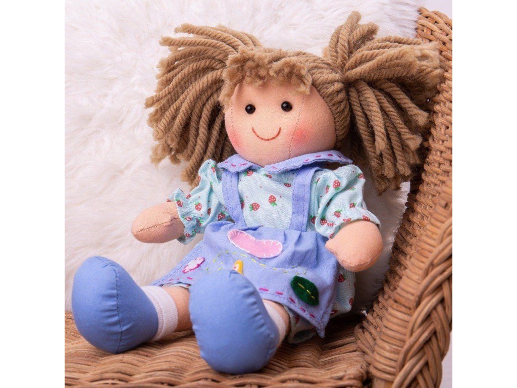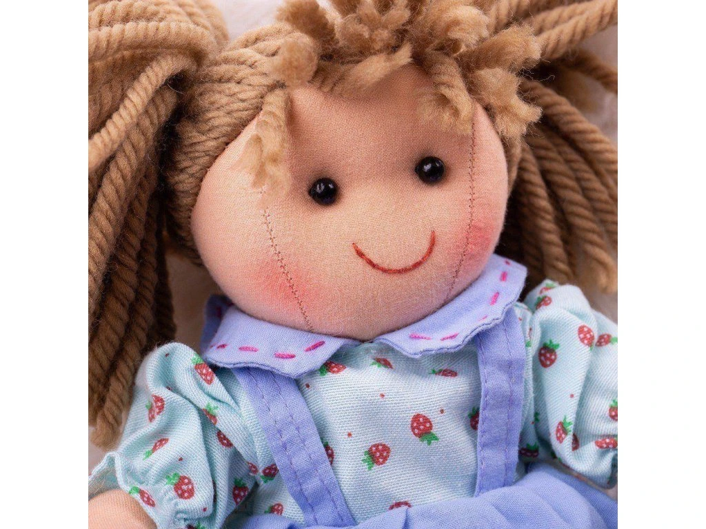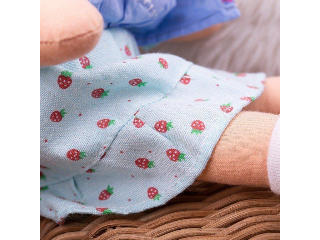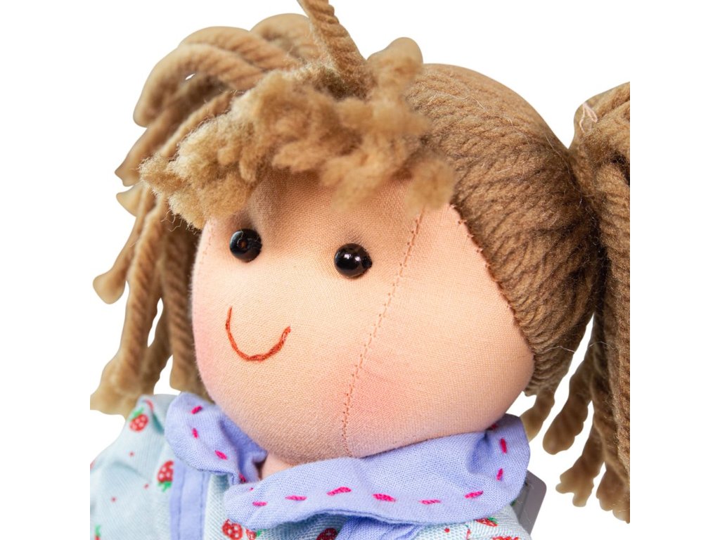 Zoznámte sa s Grace - veselou, farebnou, látkovou bábikou, s ktorou sa Vaše dieťa bude určite rado hrať. Bábika je oblečená do kvalitného oblečenia v peknom, bledomodrom prevedení so vzorom červených jahôdok. Mäkké látkové bábiky sú skvelým spôsobom, ako podporiť kreatívne hranie. Hlavné vlastnosti: bezpečné mäkké telíčkohra s bábikou rozvíja jemnú motoriku a schopnosť pomáhať, staraťk bábike Bigjigs Toys je možné dokupovať oblečenie v príslušnej veľkostivhodné už od narodeniazodpovedá súčasným európskym bezpečnostným normámDodatočné parametre