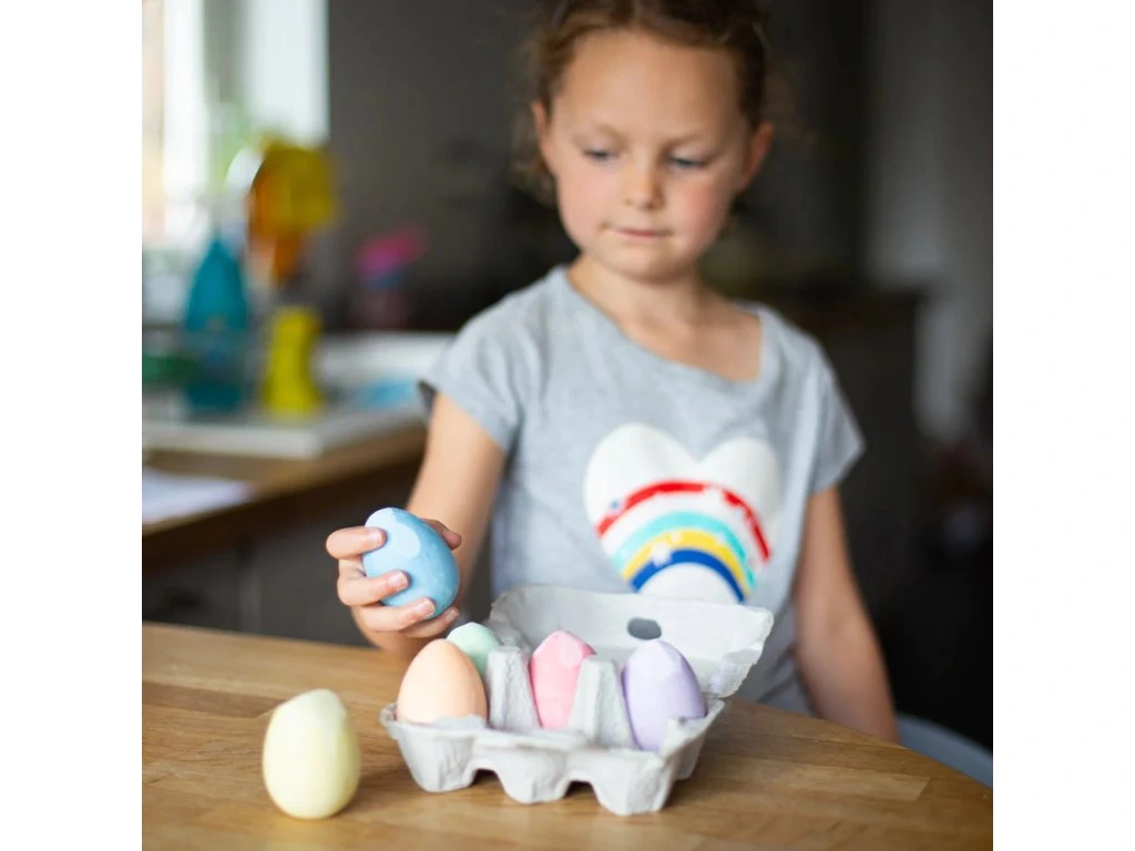 Podporte kreatívnu zábavu svojich detí s týmito kriedami v tvare vajcia. Sada kried na kreslenie na chodník alebo tabuľu. Široká paleta pestrých farieb (žltá, zelená, oranžová, ružová, fialová a modrá) umožní deťom vytvárať pútavé umelecké diela. Kriedy sú veľkosťou prispôsobené detským rúčkam, ľahko sa tak držia. Dodávajú sa úhľadne zabalené v kartónovej krabičke na vajíčka, takže môžu byť ideálnym darčekom na Veľkú noc. Hlavné vlastnosti: 6ks kried rôznych farieb v tvare vajciabalené kartónovej krabičke na vajíčkapraktická veľkosťDodatočné parametre