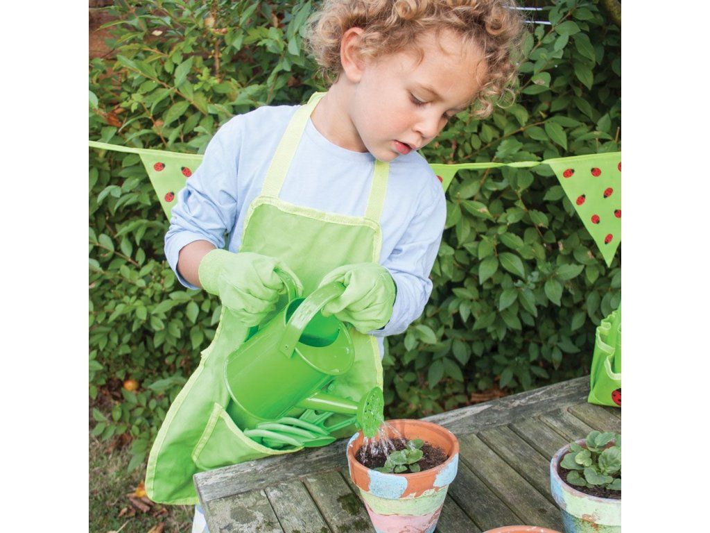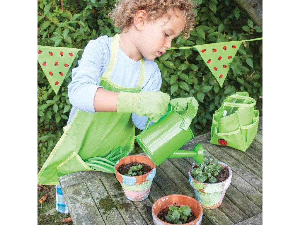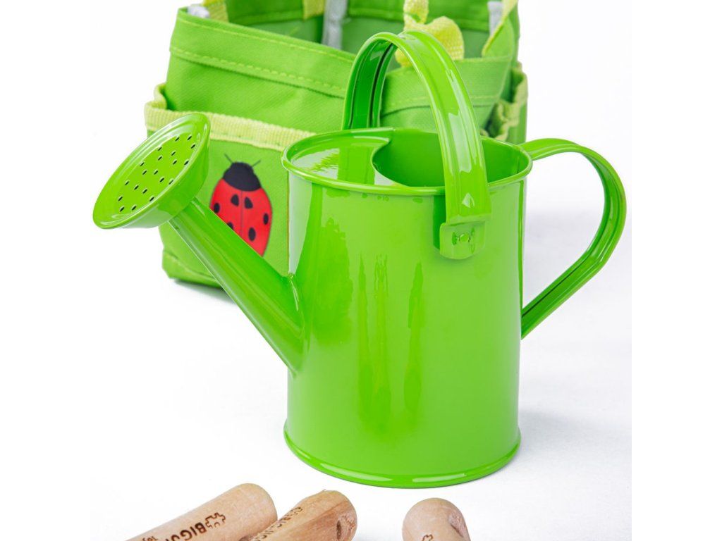 Taška s pekne vyvedenými červenými lienkami zahŕňa a pojme všetko, čo malý záhradník potrebuje, rýľ, lopatku, kypriaci hrabličky, kanvu aj rukavice. Malí záhradníci ju budú milovať. Náradie, kanva a rukavice, všetko pre kopanie hliny a zalievanie rastlín s mamou a otcom. Elastická zápästie záhradných rukavíc zaisťujú, aby do rukavíc nič nepadalo a aby neskĺzli. Kropiace kanva je vybavená pevnou hubicou a hornou aj bočnou rukoväťou, ktoré uľahčujú držanie malým ručičkám. Sada pozostáva zo 6 kusov. Bigjigs Toys tiež ponúka široký rad záhradných doplnkov zahŕňajúci napríklad náhradné rukavice a ručné náradie, náradie s dlhou rukoväťou, kolieska, kanvy a zásteru. Hlavné vlastnosti: sýta výrazná farbataška, rukavice, kanva, lopatka, rýľ a kypriaci hrabličkyDodatočné parametre