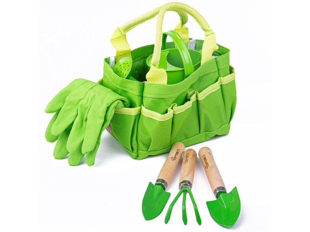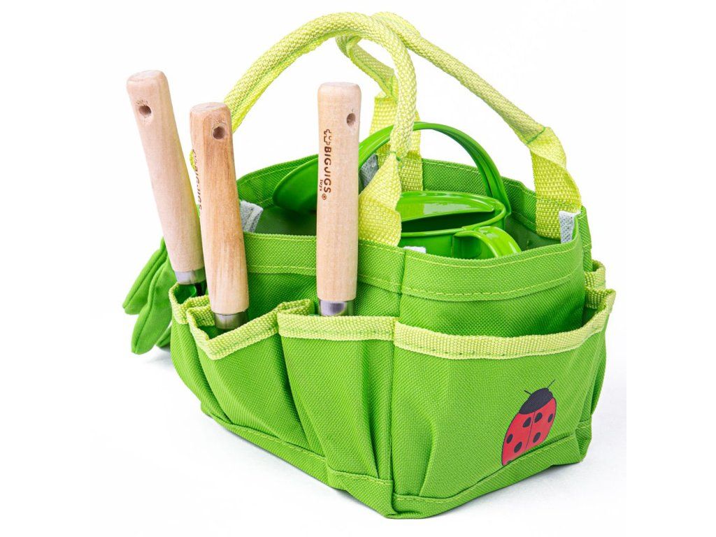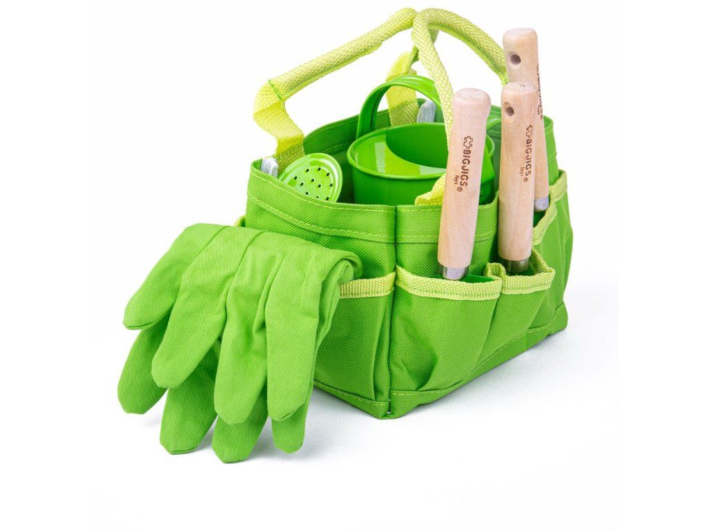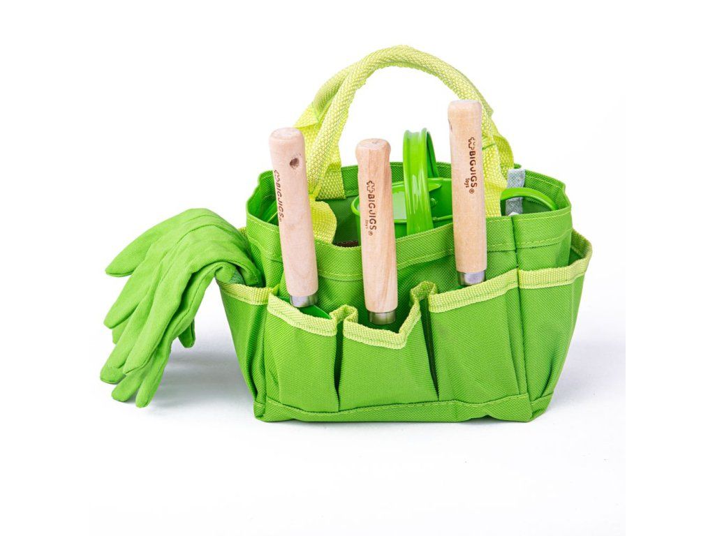 Bigjigs Toys Záhradná sada náradia v plátené taške zelený