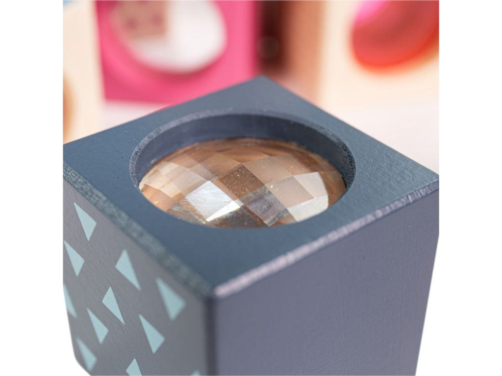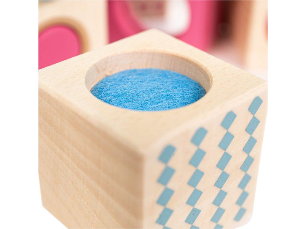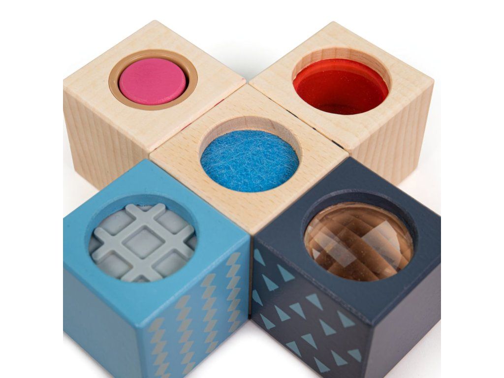 Nechajte deti preskúmať podivné vlastnosti kociek a pritom cibriť svoje zmysly. Atrakcie v kockách pomáhajú stimulovať najmä hmat, ale aj zrak a sluch. Zahŕňajú ako rozmanité materiály a povrchy, tak rolničku, pískací valček, hrkálku, kukátko, optický hranol alebo zrkadlo. Sú ošetrené nezávadnými farbami i lakmi, a nemusíte preto mať obavy, keď ich bude Vaše dieťa skúmať aj ďalšími zmyslami. Samozrejme ich možno využiť aj ako súčasť mnohých fantastických stavieb. Pri ich výrobe boli použité vysoko kvalitné a zodpovedne získané materiály, predovšetkým certifikované drevo z udržateľných zdrojov. Hlavné vlastnosti: 8 kociek celkom; 2 hmatové, 3 zrakové a 3 sluchové atrakcieatraktívne a odolné spracovanievyrobené zo 100% FSC® dreva Značka a certifikát FSC® (Forest Stewardship Council) zaručuje, že drevo, z ktorého bol výrobok vyrobený, nebolo vyťažené nelegálne a pochádza z lesov obhospodarovaných šetrným či prírode blízkym spôsobom, v ktorom sú dodržiavané prísne environmentálne a sociálne požiadavky. Značka FSC® na výrobku znamená, že svojim nákupom pomáhate chrániť lesy a podporujete šetrné, zodpovedné či prírode blízke hospodárenie, vďaka ktorému sú naše lesy stabilnejšie, zdravšie, majú prirodzenú druhovú skladbu a lepšie odolávajú negatívnym následkom klimatických zmien.Dodatočné parametre
