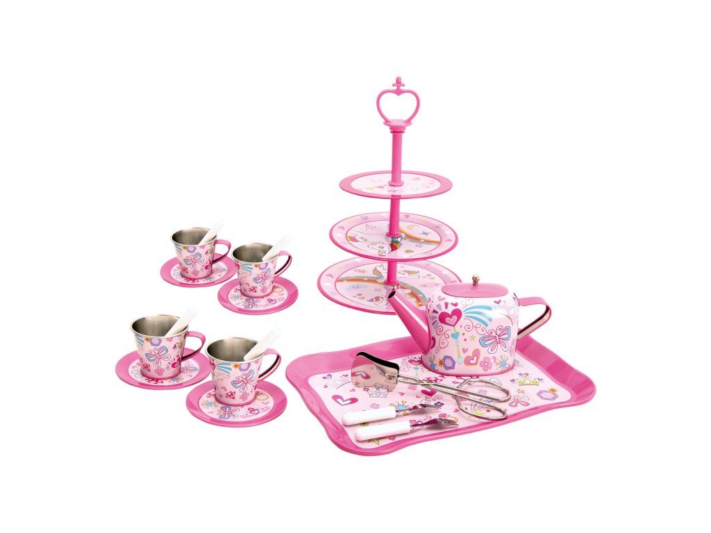 Čas na kúzelný čajový večierok pre rodičov, bábiky a plyšových kamarátov! S bohatým čajovým servisom môžu deti rozvíjať fantáziu a svoje sociálne aj komunikačné schopnosti. Súprava je detailne dekorovaná, vyrobená z odolného ľahkého kovu a nezávadného plastu. Hlavné vlastnosti: servis pre 4 osoby, 35 dielov celkomodolné prevedenieDodatočné parametre