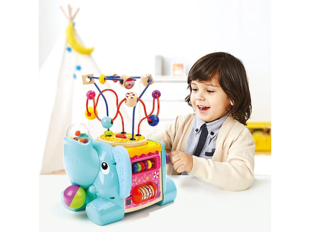 Poškodený obal. Nový tovar bez závad. Motorická kocka v tvare slona je veľmi zábavná hračka pre malé deti. S mnohými rôznymi úlohami, s ktorými sa stretnú pri hraní s touto kockou, si precvičia jemné motorické zručnosti rúk, natrénujú logické myslenie a sústredenie. Na vrchnej strane kocky je umiestnený motorický labyrint. Hlavné vlastnosti: rozvíja predstavivosťmožnosť naučiť sa farby a tvarypriestorové povedomia a obratnosťkoordinácia rúk a očípomáha učiť sa tvorivosti a logickému mysleniuDodatočné parametre