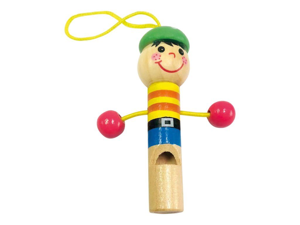 Farebné drevené píšťalky s veselými postavičkami a praktickým pútkom na zavesenie podporujú rozvoj detského sluchu. Vyludzujú príjemný hlasný zvuk, sú preto vhodné aj ako futbalové, alebo signálne píšťalky. Poteší ako drobný darček na mnohé príležitosti! Vyrobené z masívneho dreva a nalakované nezávadnými farbami. Cena je uvedená za 1 ks, konkrétny motív zasielame náhodne. Hlavné vlastnosti:atraktívny motívuniverzálne použitieodolné drevené prevedenieDodatočné parametre