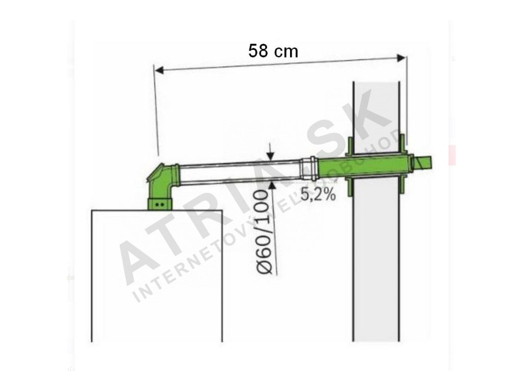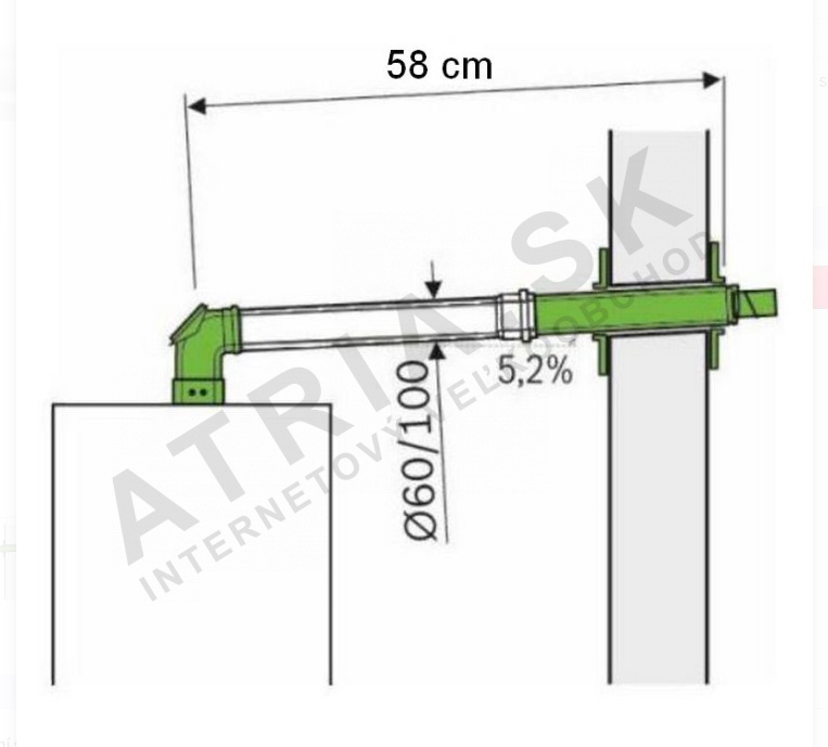 - Sada obsahuje připojovací adaptér Ø 60/100 (7738112636), koleno, troubu s nastavitelnou délkou 310-505 mm.