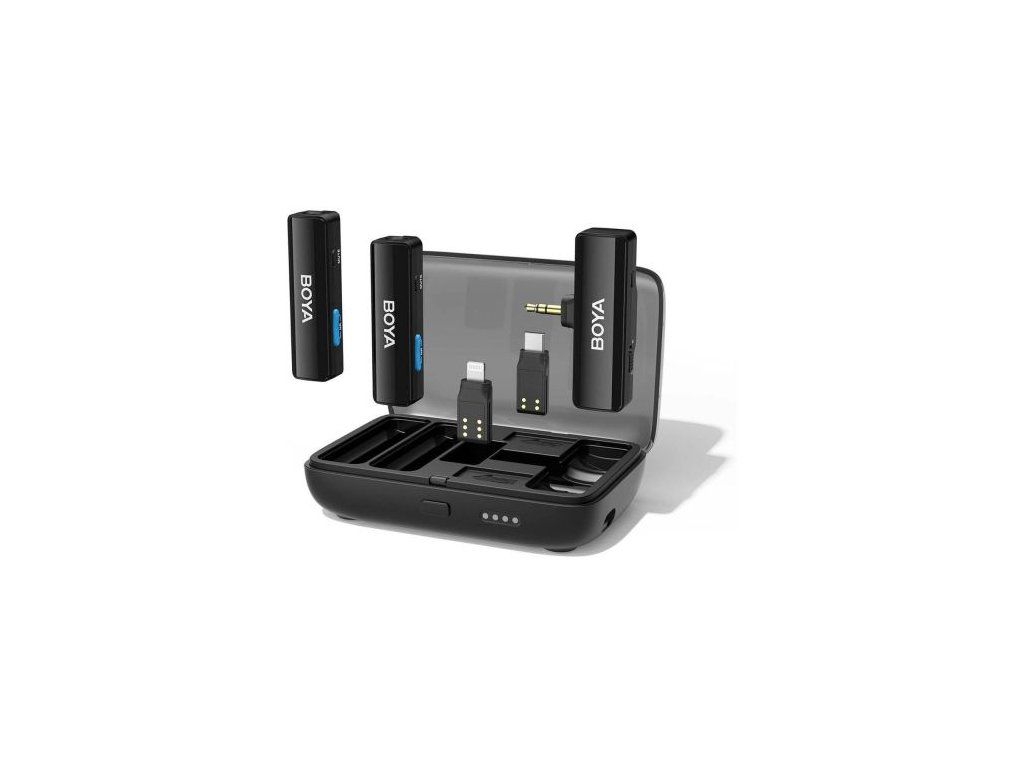 BOYA Microphone Wireless, All-in-one, 2.4GHz, 1 receiver and 2 transmitter, Ultra-Long Battery Life Black EU