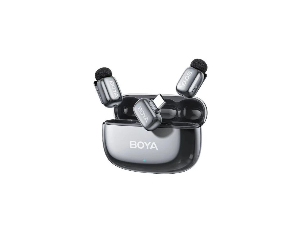 BOYA Microphone Wireless Mini 2-02 2.4GHz, AI Powered Noise Cancellation with 2 transmitters and 1 receiver (Type-C) Space Gray EU