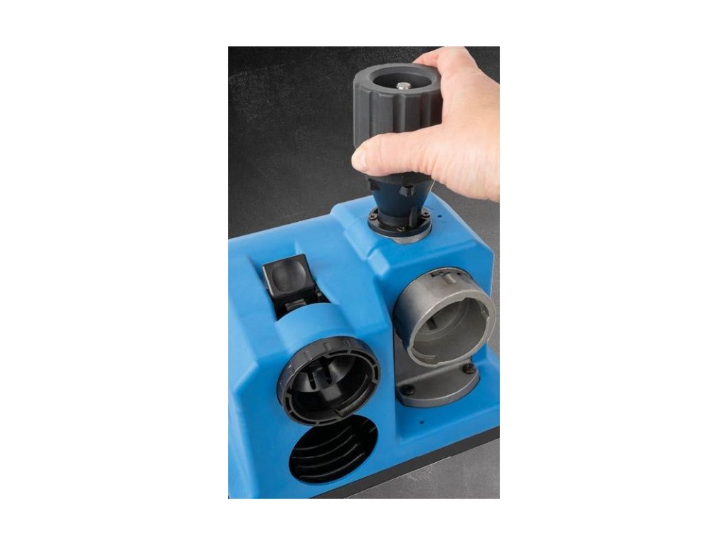Brúska na ostrenie vrtákov s priemerom 3 - 13 mm. Plastový kryt, teleso stroja z hliníka.