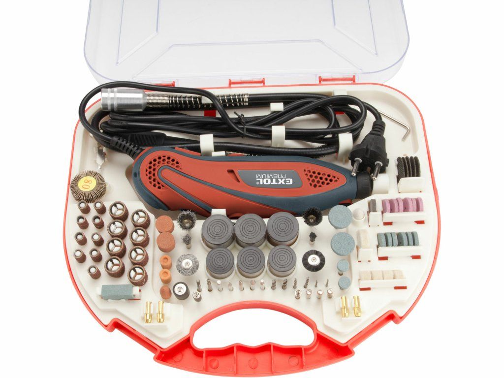 - 210-dielne príslušenstvo pre širokú škálu použitia: brúsenie, rezanie, leštenie, vŕtanie, gravírovanie atď.