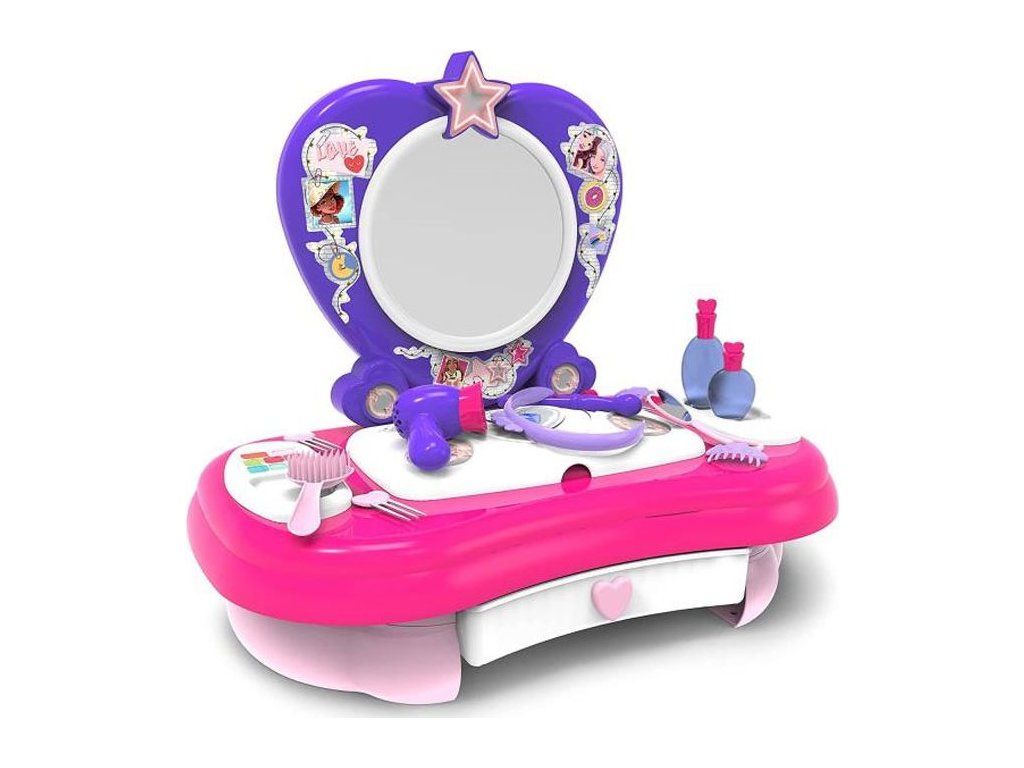 Účesy, líčení, zkoušení parfémů..tohle vše je možné zažít u tohoto kosmetického stolečku. součástí je velké zrcadlo, ve kterém uvidíte každý detail obsahuje 12 doplňků: fén, hřeben, lahvičky na parfémy, sponky do vlasů a spoustu dalších..Dodatočné parametre