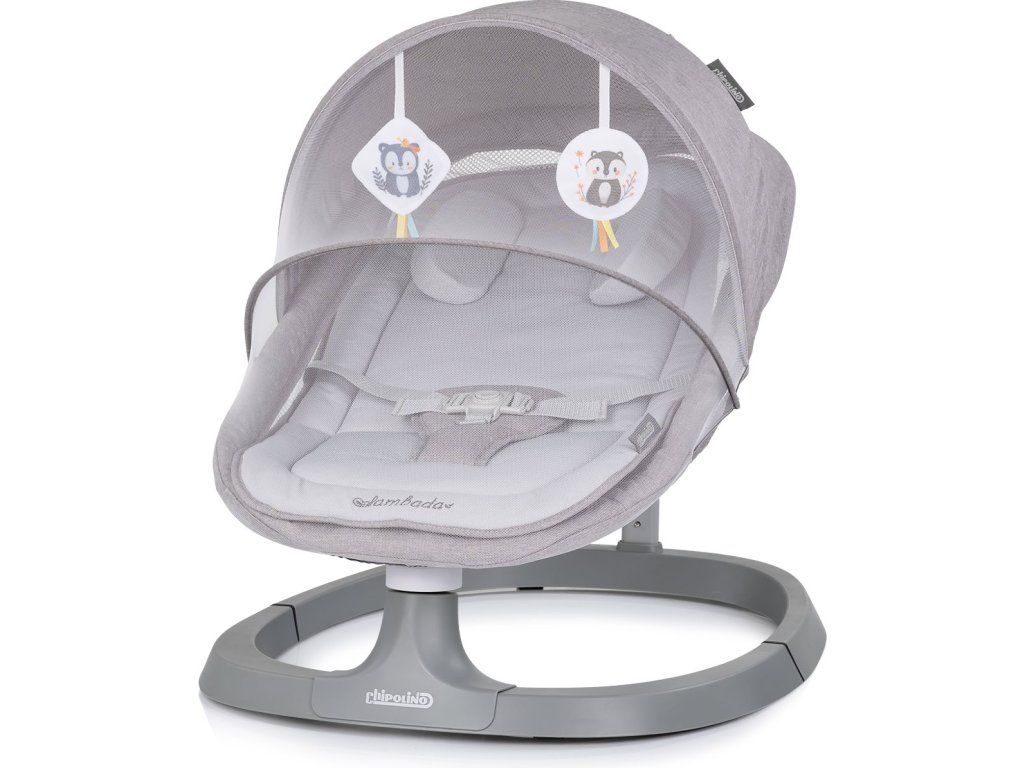 Kojenecké lehátko 2v1 - lze jej využít jako houpátko pro miminka a malé děti do doby, než začnou samostatně stát nebo jako židličku pro děti od 1 do 3 let, které již umí samostatně sedět. Vlastnosti: 3 různé typy houpání s různými úrovněmi rychlosti, časovač na 15, 30 a 45 minut, různé melodie, poloha vleže a vsedě – vhodné pro spánek, krmení i hraní s dítětem, nastavitelné opěradlo do 2 poloh, rám s LED dotykovým displejem, stříška s měkkými plyšovými hračkami, měkká opěrka hlavy, bezpečnostní pás, moskytiéra, dálkové ovládání, napájení kolébky pomocí AC,DC adaptéru – AC: 100–240 V, 2.0 A (je součástí balení), rozměry výrobku: 80 x 55 x 70 cm. Kolébka byla vyrobena v souladu s evropskou normou EN 12790.Dodatočné parametre