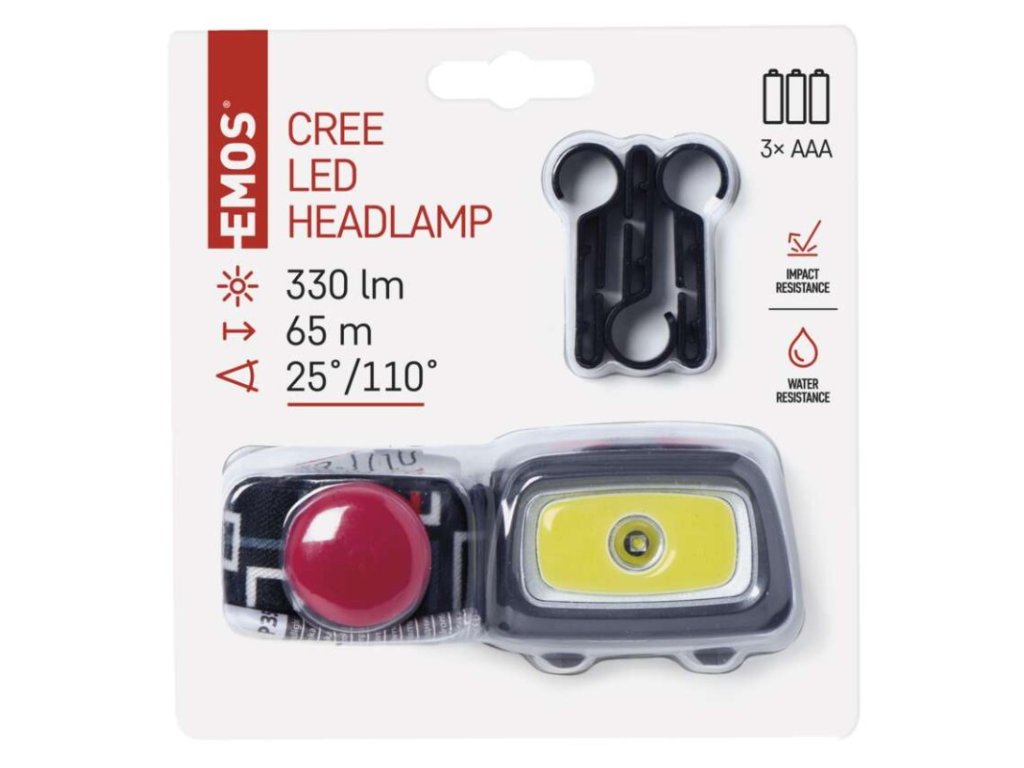 CREE LED + COB LED čelovka P3531, 330 lm, 65 m, 3× AAA