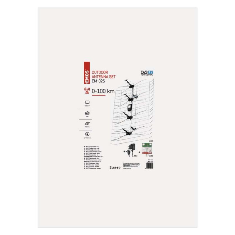 Anténa vonkajšia EM-025, 0–100 km, DVB-T2, DAB, filter LTE/4G