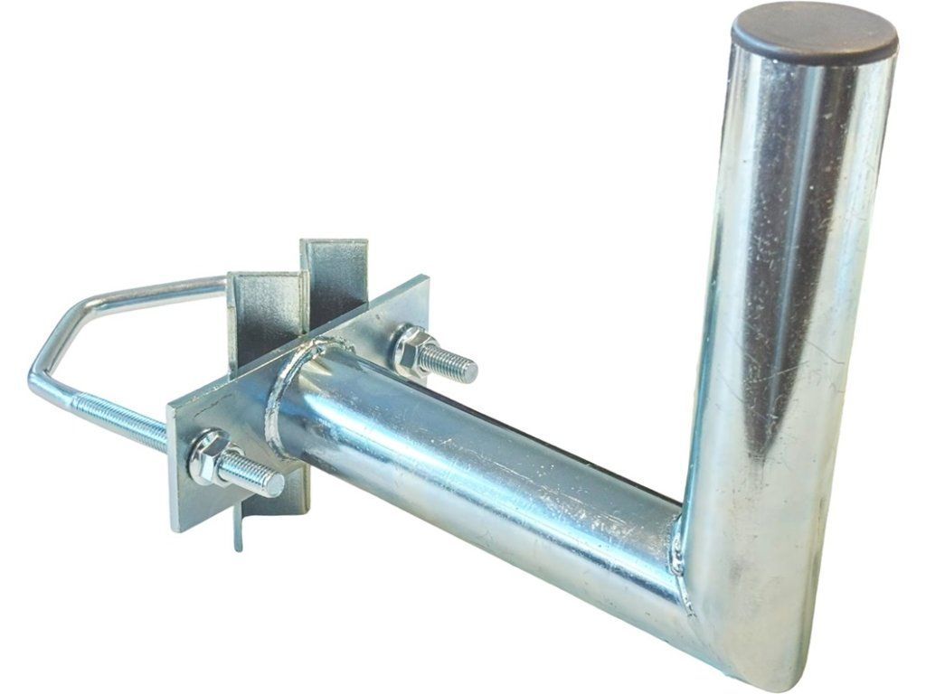 Anténní držák na stožár, délka 20cm, výška 20cm, průměr 42mm, s vinklem, třmen 100mm