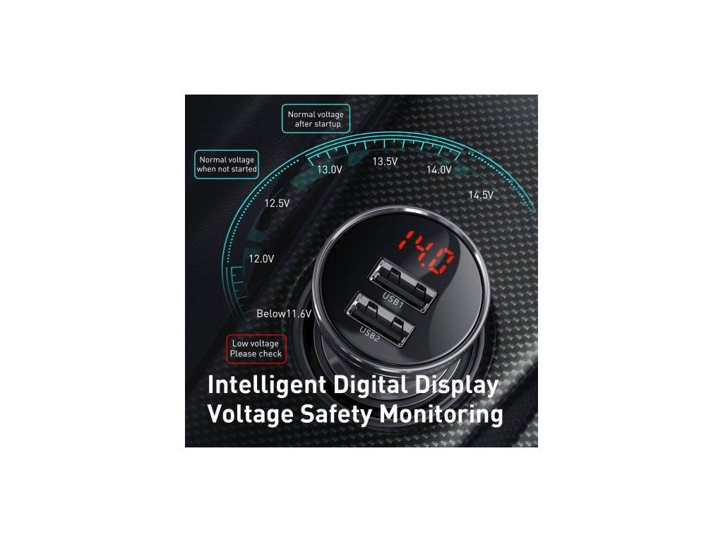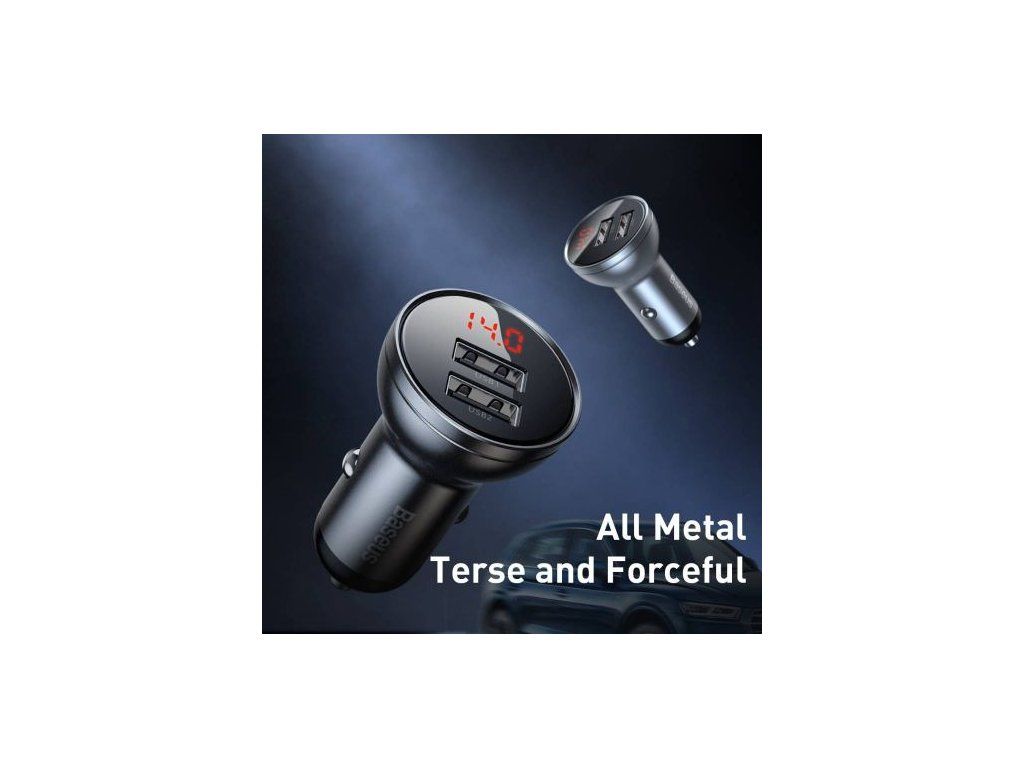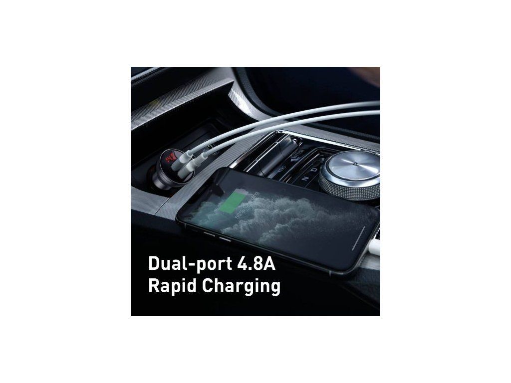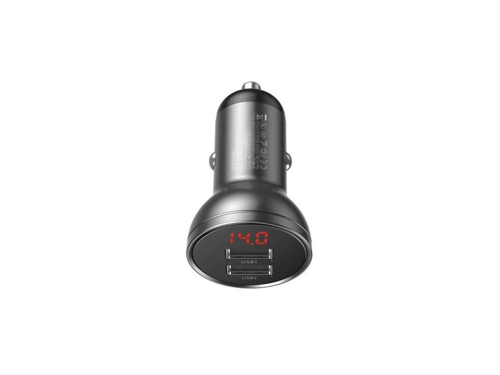 Baseus Car Charger Digital Display Dual USB 4.8A 24W Gray (CCBX-0G)