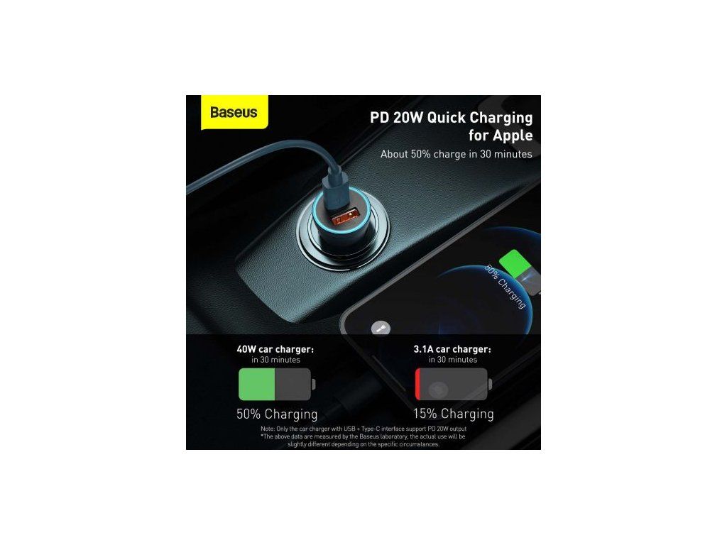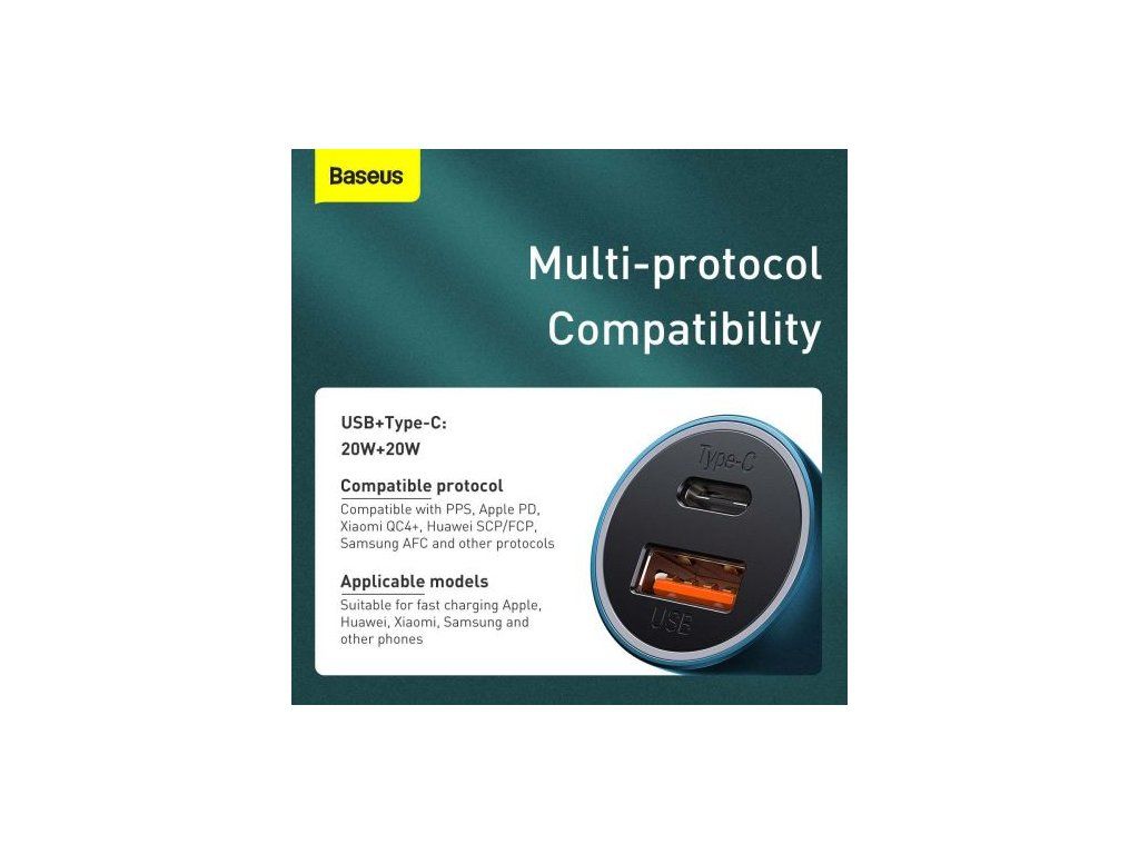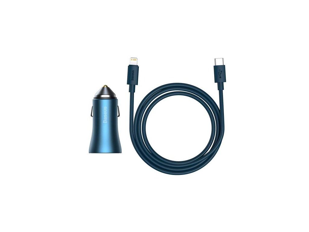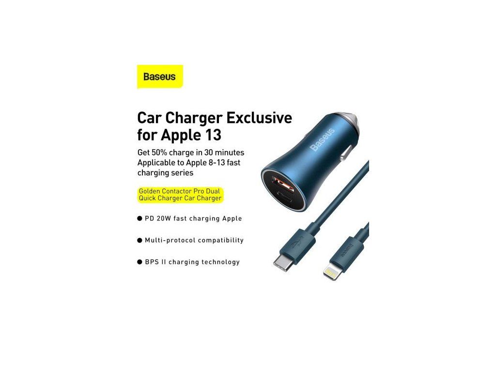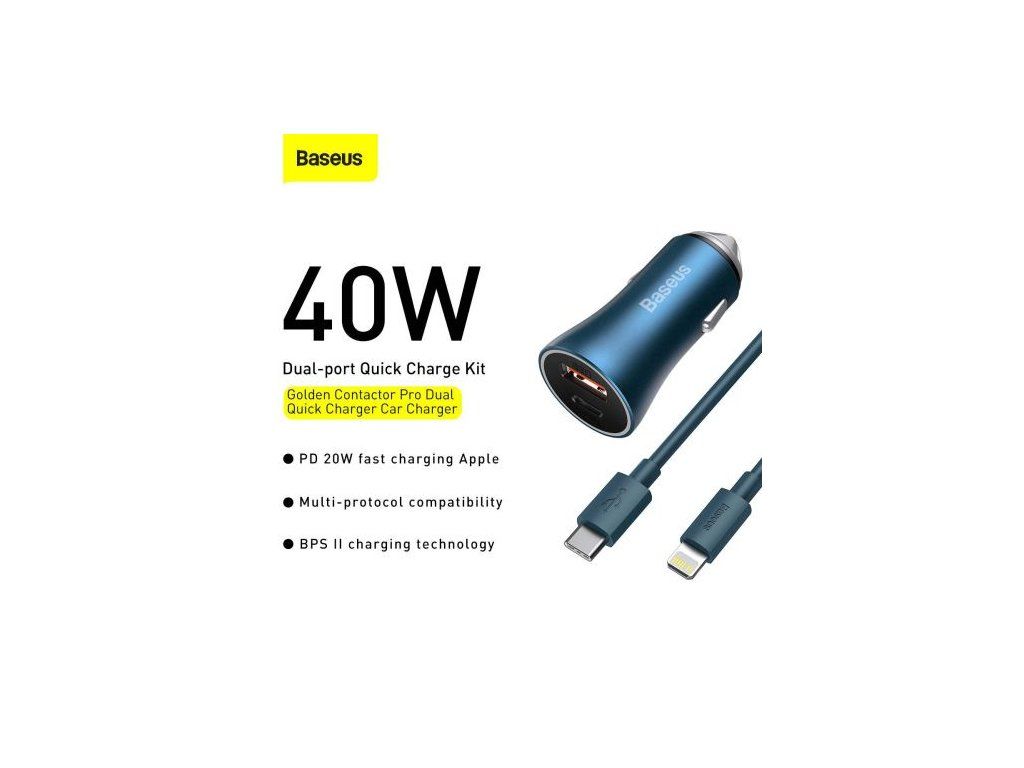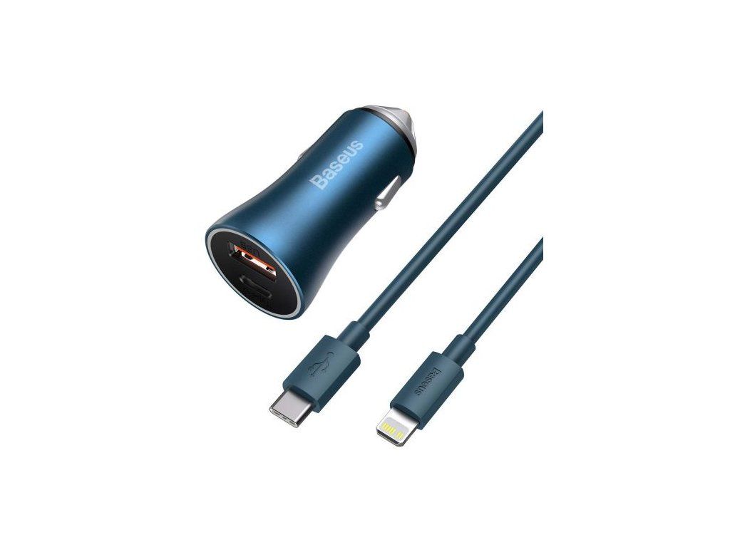 Baseus Car Charger Golden Contactor Pro Dual Quick Charger U+C, PD 3.0, QC 4+, SCP FCP AFC (with Type-C - Lightning 1m Blue) 40W blue (TZCCJD-03)