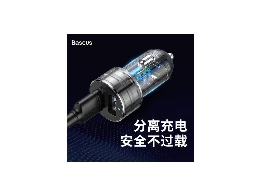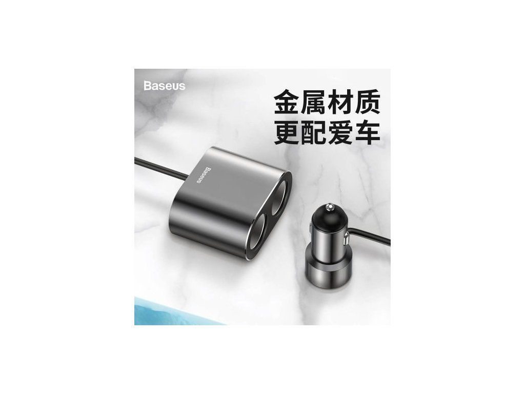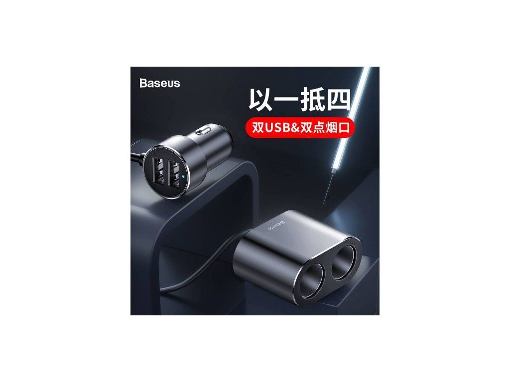 Baseus Car charger One to Two Cigarette Lighter(dual- lighter 80W+dual USB 3.1A) Silver (CRDYQ-0S)