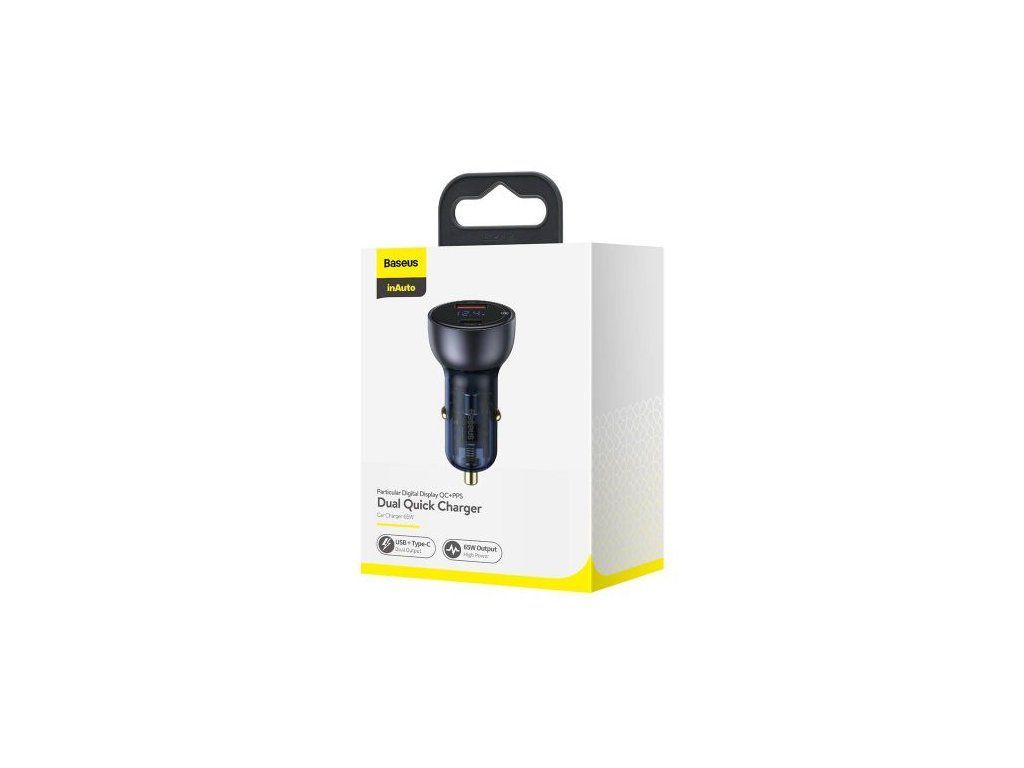 Baseus Car Charger Particular Digital Display C+U, PD 3.0 QC 4.0+, SCP, PPS, 5A, 65W Dark Gray (CCKX-C0G)