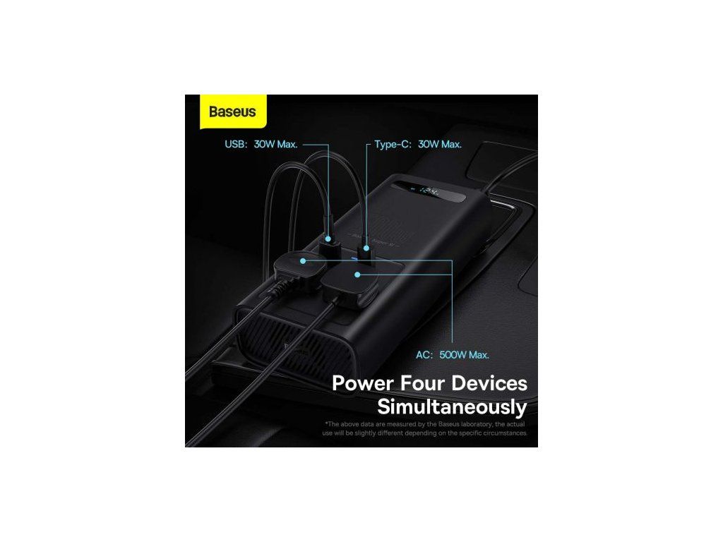 Baseus Car Power Inverter 150W 12V / 500W 220V (C+U + Dual EU plug) Black (CGNB000101)