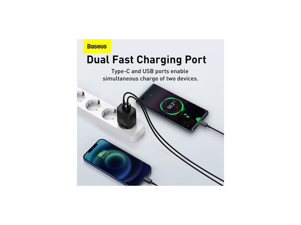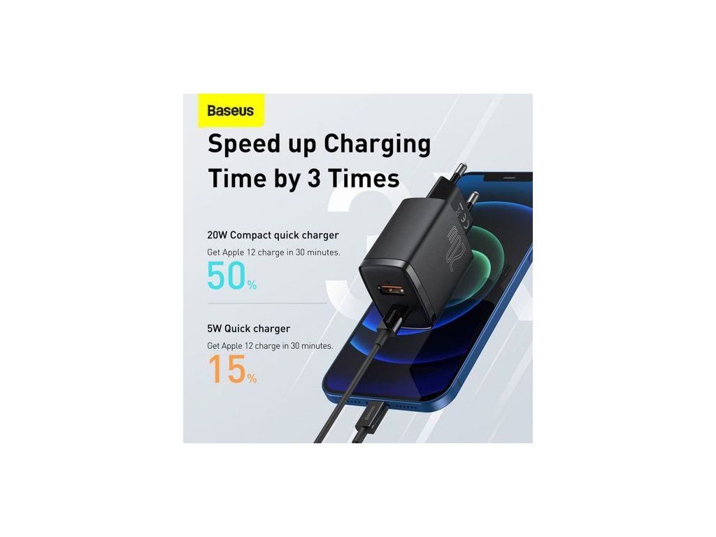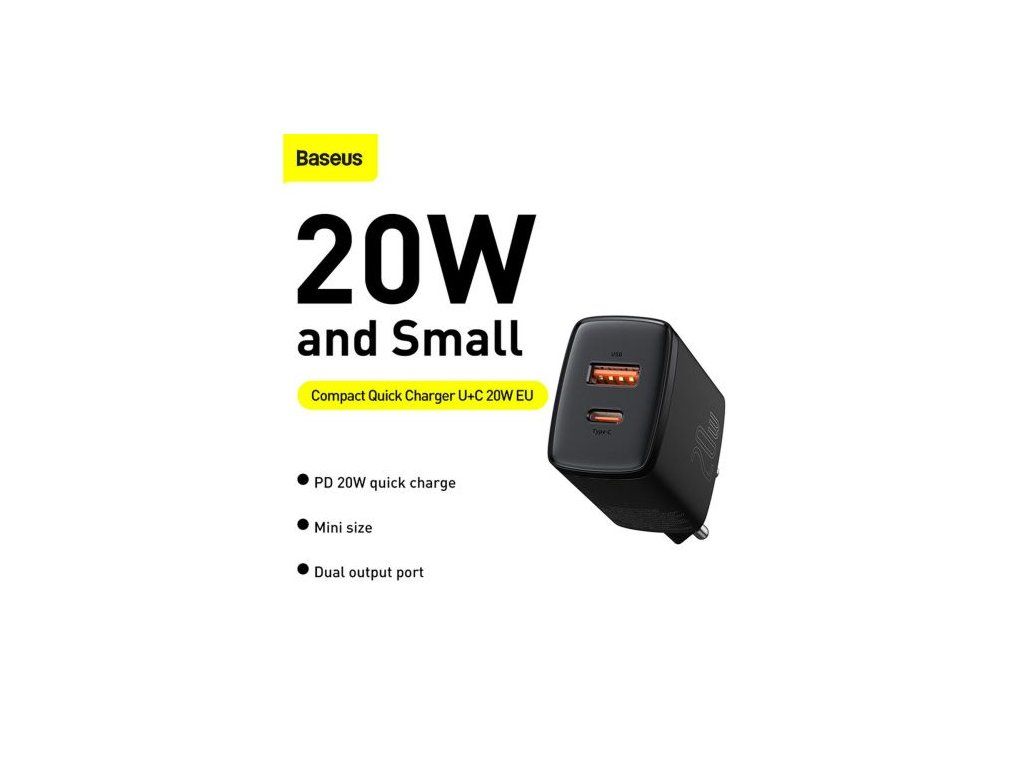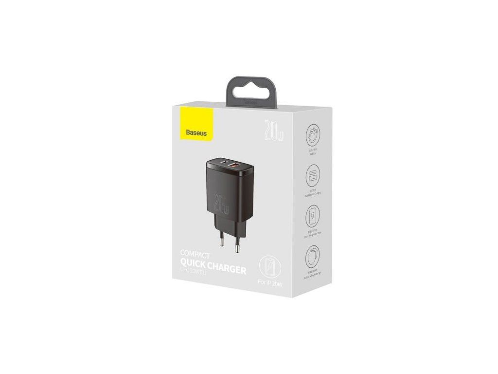 Baseus Travel Charger Compact Quick Charger U+C 20W EU Black (CCXJ-B01)