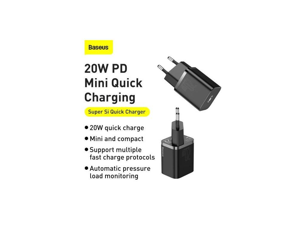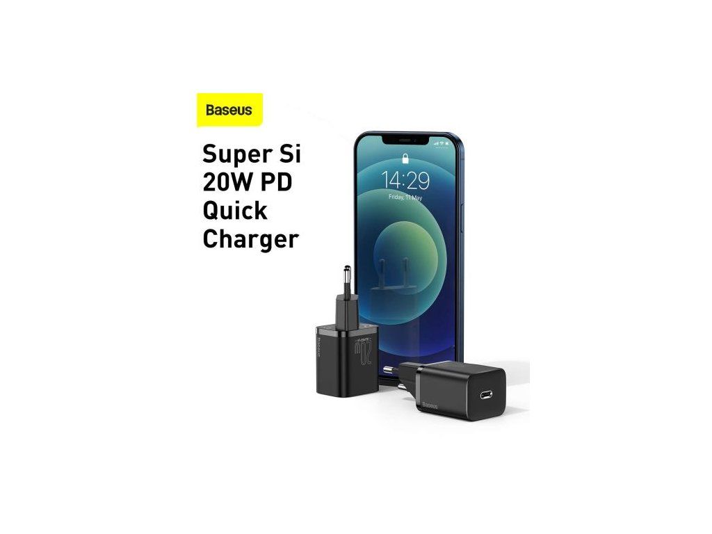 Baseus Travel Charger set Super Si 1C PD Fast charger 20W EU Black (CCSUP-B01)
