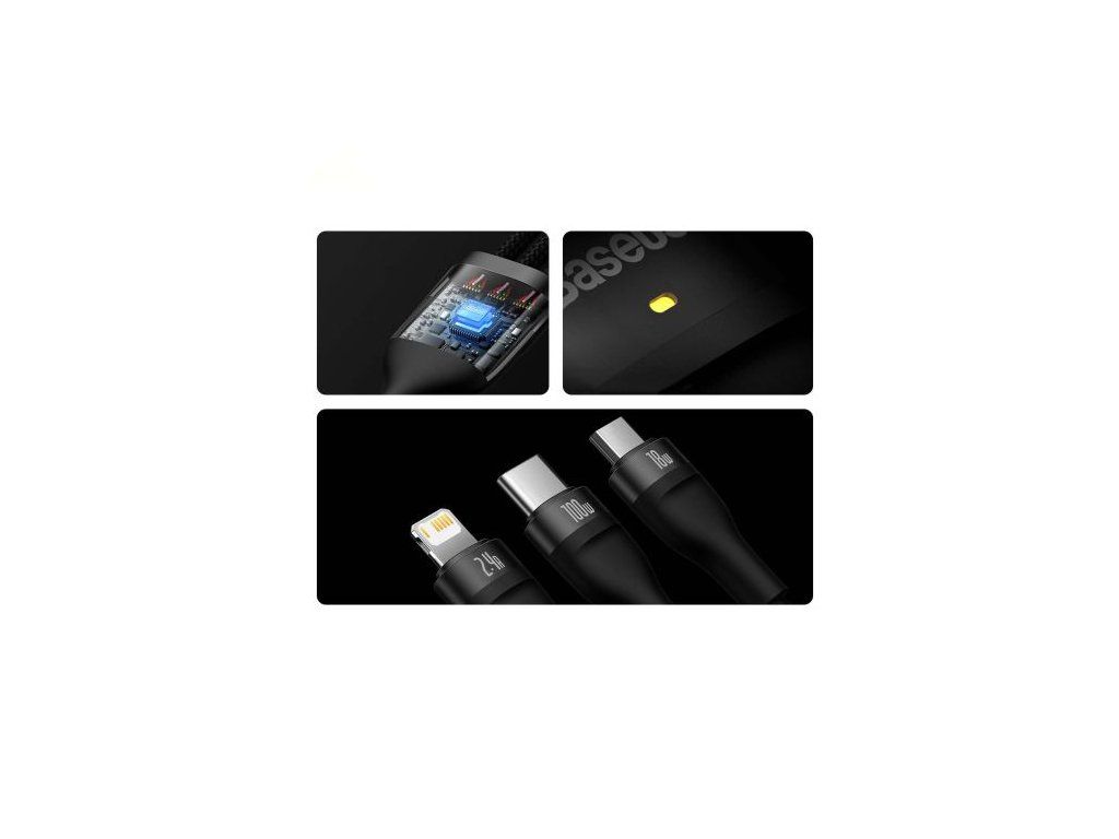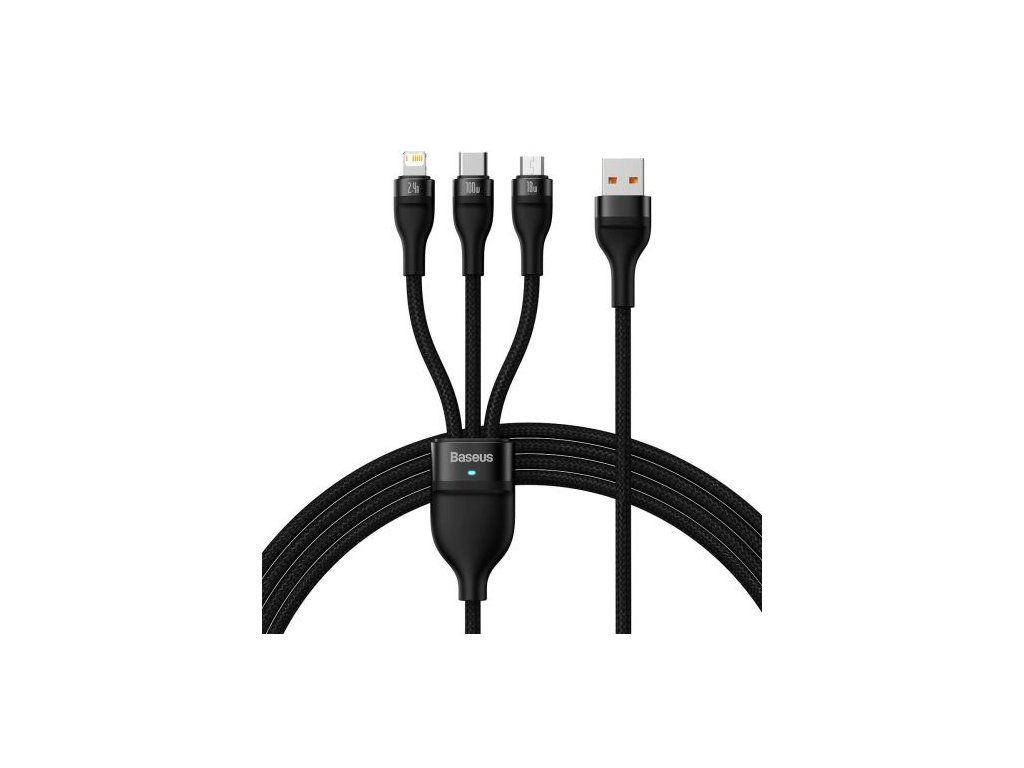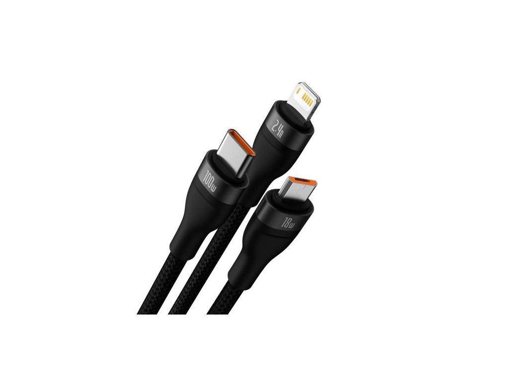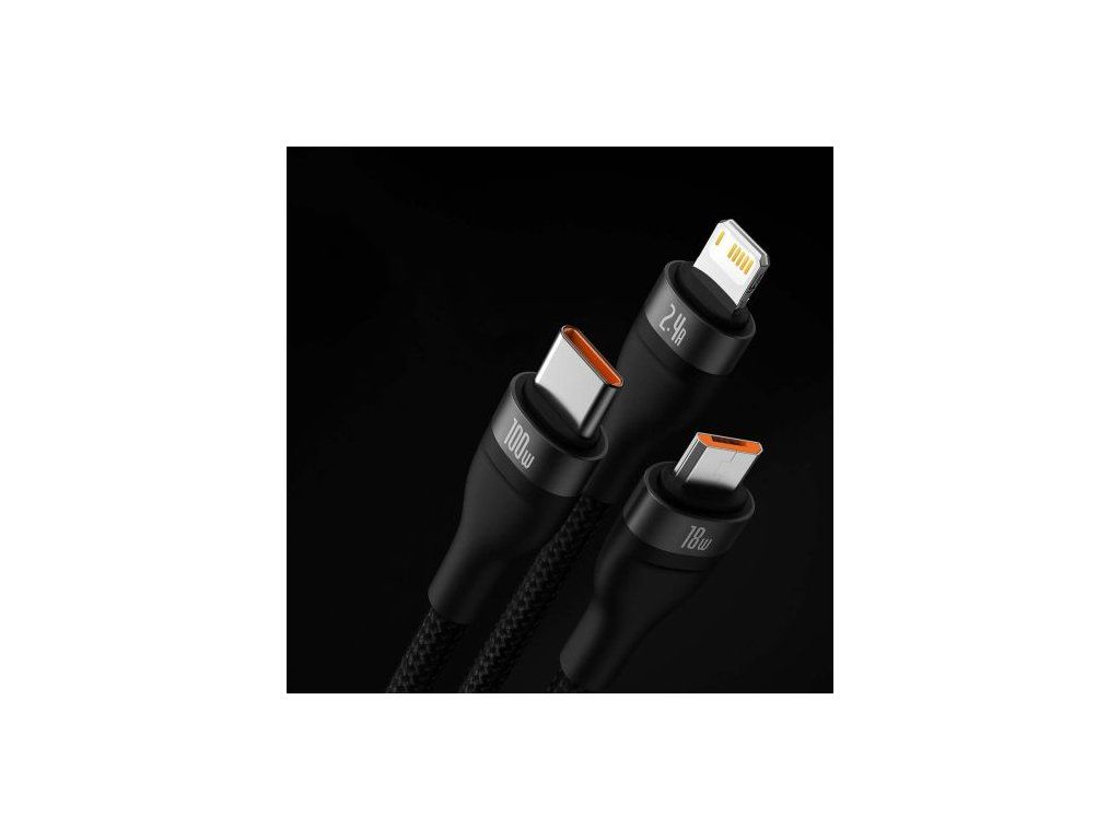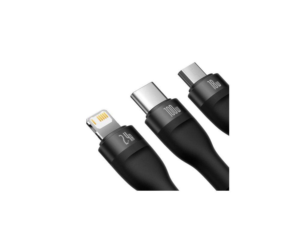 Baseus Universal Flash Series 3-in-1 Fast Charging Data Cable (USB-A to Micro + Lightning + Type-C) 100W, 1.2m Black (CASS030001)
