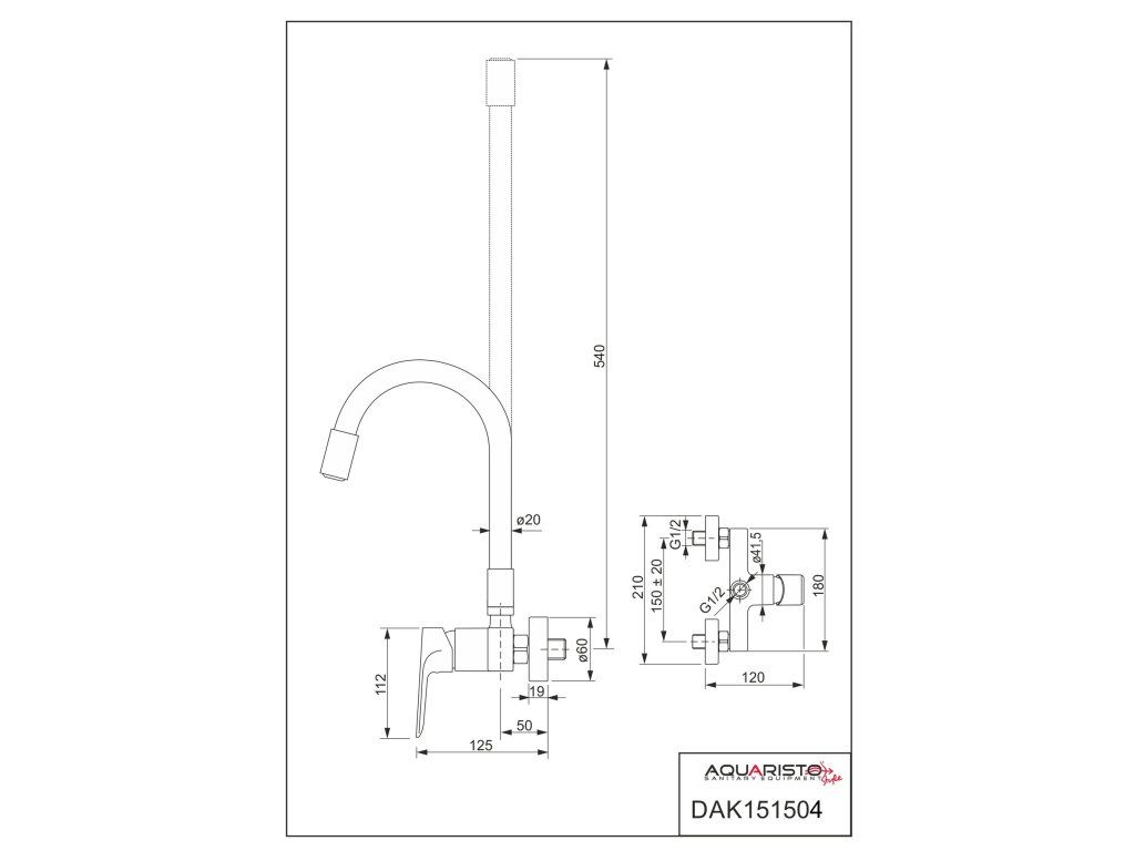 batéria AQS drezová stenová s flexibilným béžovým výtokom, rozstup 150mm, DAKOTA